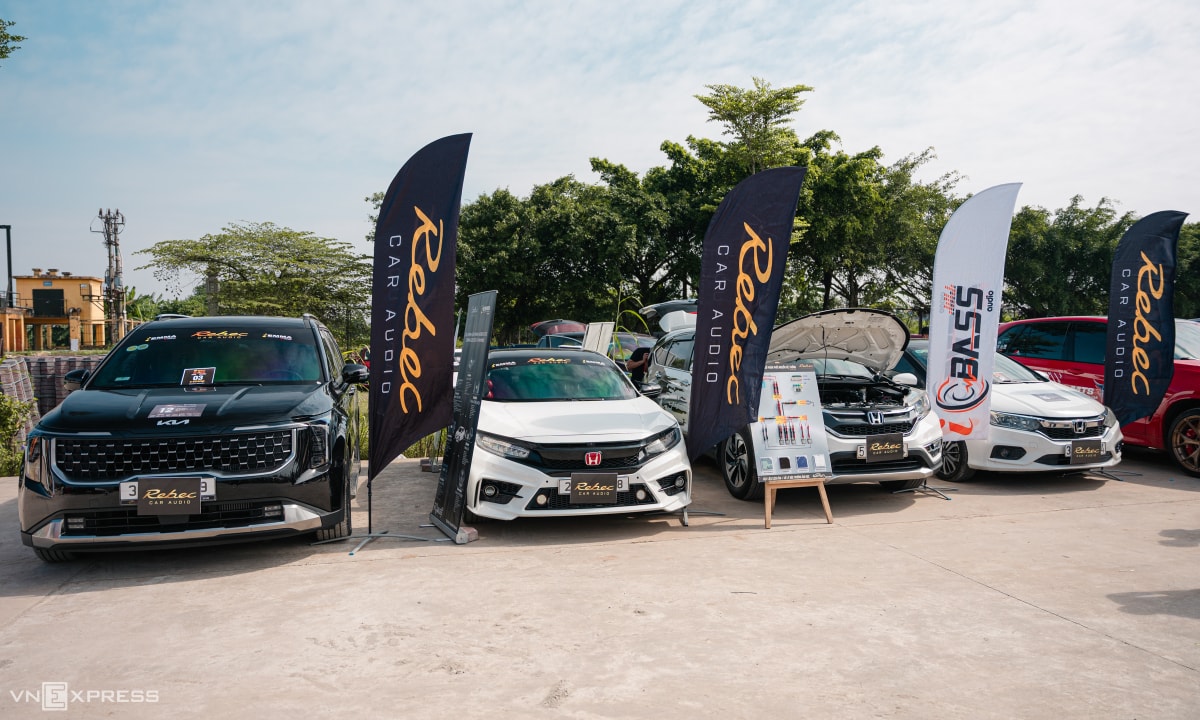 Xe độ âm thanh tại giải đấu đa dạng thương hiệu, kiểu dáng, từ các mẫu xe nhỏ như VF 3 tới xe sang BMW X5.