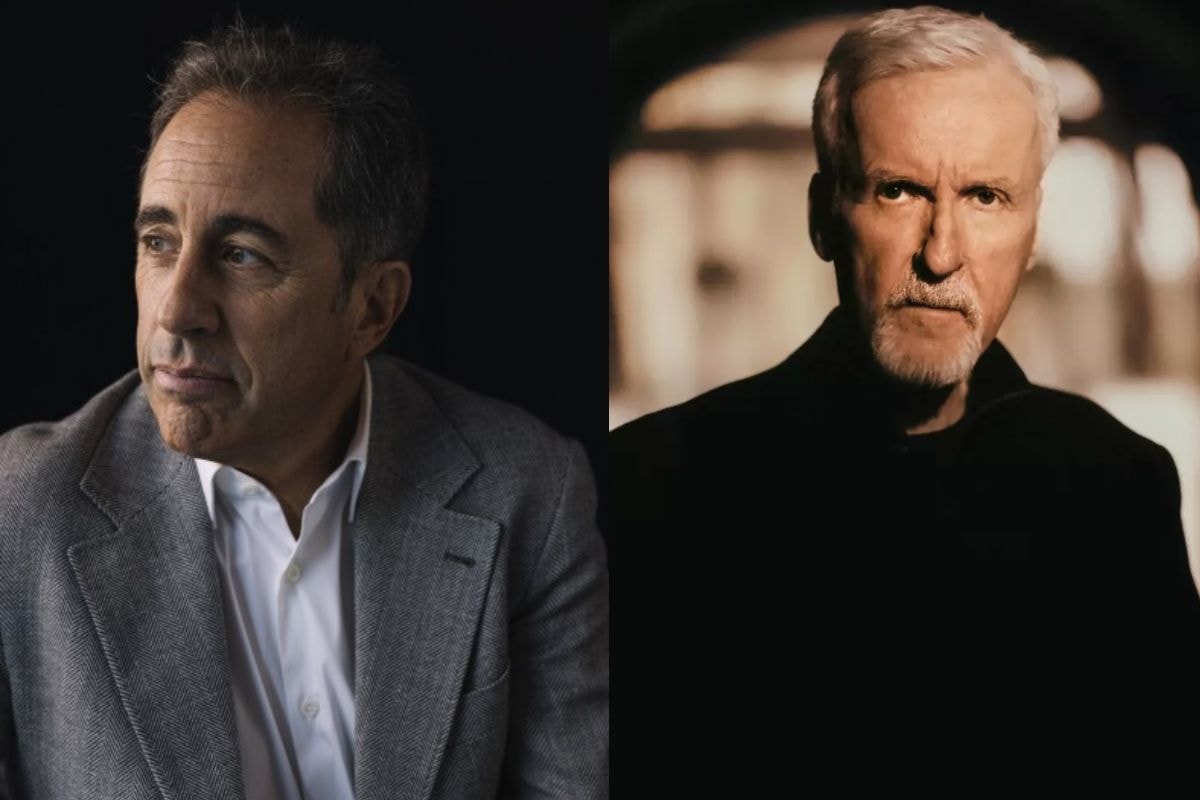Danh hài Jerry Seinfeld (trái) và đạo diễn Avatar James Cameron, cùng 72 tuổi, lần lượt giữ hạng 17 và 19 với 1,1 tỷ USD. Giữa hai người là vận động viên quần vợt Roger Federer, có khối tài sản bằng họ. Ảnh: AP/ The Times