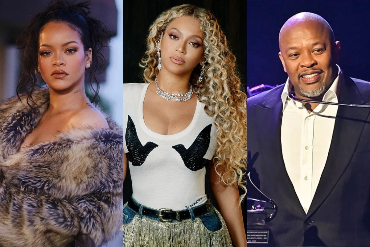 Từ trái qua: ca sĩ Rihanna, Beyoncé và rapper Dr. Dre là những cái tên xếp cuối bảng xếp hạng với một tỷ USD. Ảnh: Instagram Rihanna, Beyoncé/ Variety