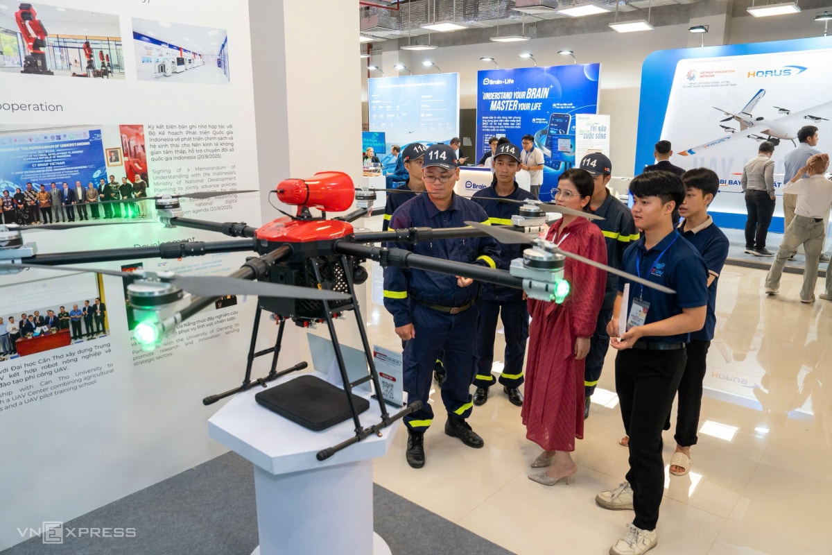 Triển lãm Quốc tế Đổi mới sáng tạo Việt Nam 2025 trình diễn nhiều sản phẩm công nghệ độc đáo như robot, sản phẩm AI, chip bán dẫn do Việt Nam phát triển.