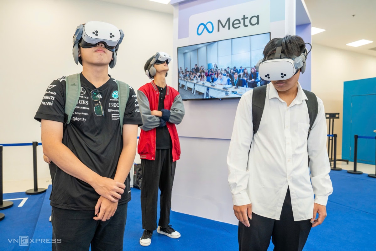 Một người đang trải nghiệm thiết bị tại Lớp hợp thực tế ảo.