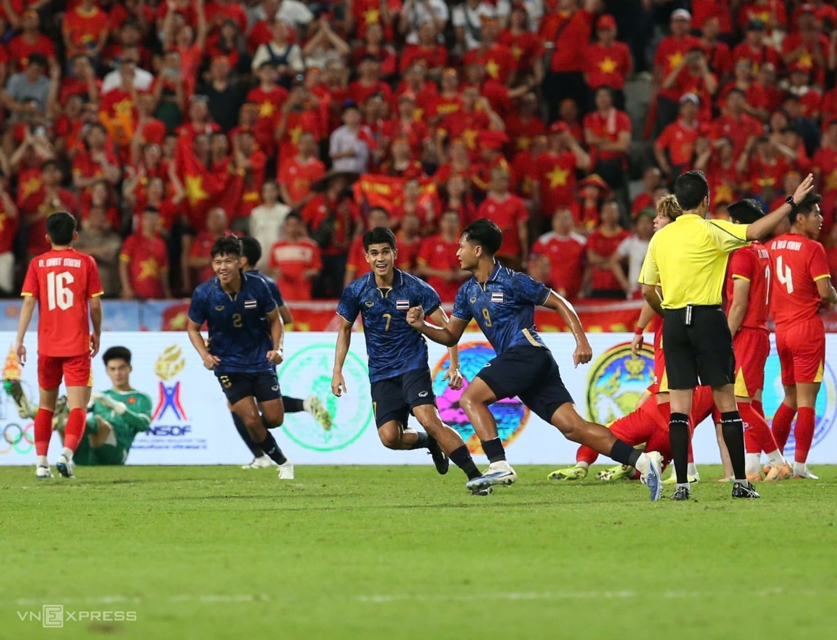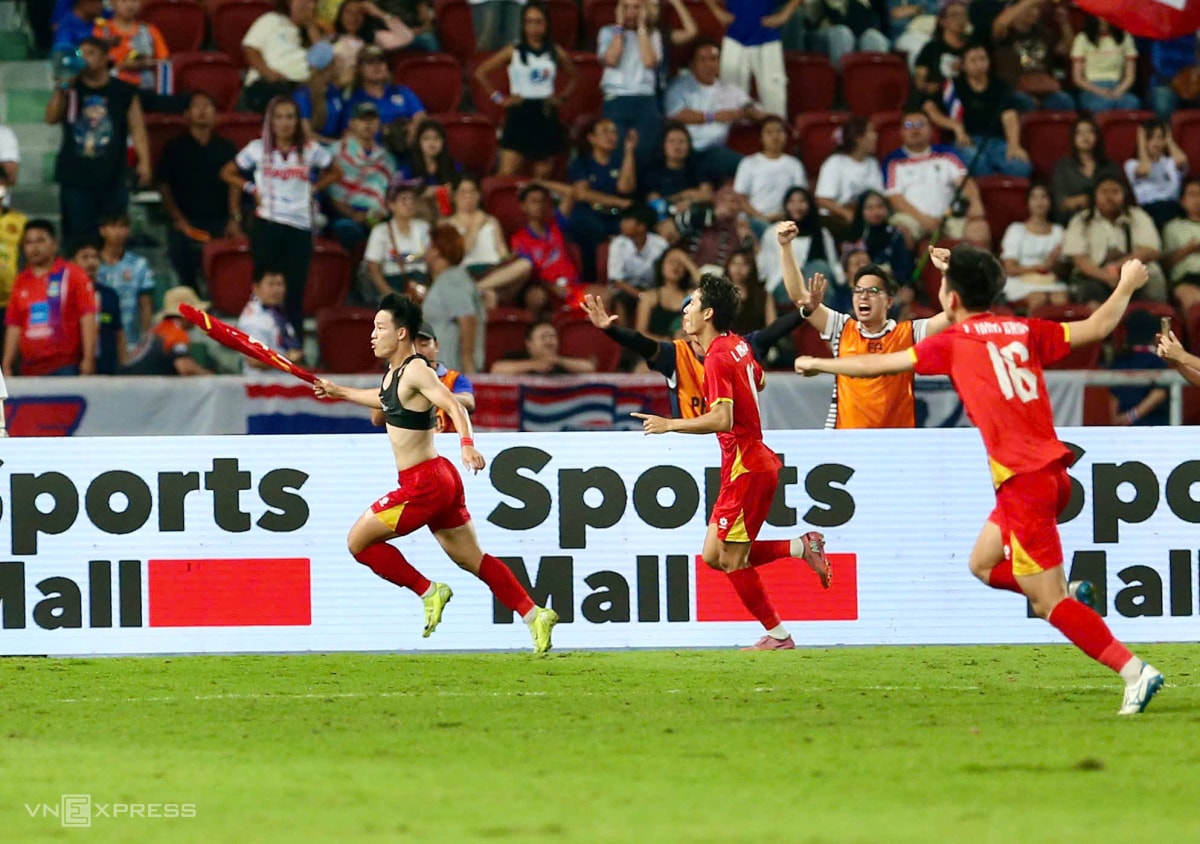 Phút 96 ở hiệp phụ, Việt Nam hoàn tất màn ngược dòng giàu khó tin. Cú sút chìm của tiền vệ Văn Thuận bị thủ môn Sorawat đẩy ra, nhưng cầu thủ vào thay người khác là Nguyễn Thanh Nhàn đã ập vào rất nhanh đá bồi thành công. Đây là lần đầu Việt Nam thắng Thái Lan trên sân của đối thủ này ở một trận chính thức thuộc cấp độ U22, U23 và Olympic.