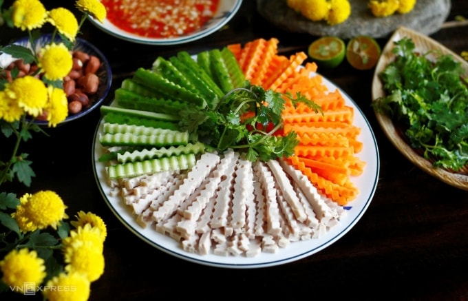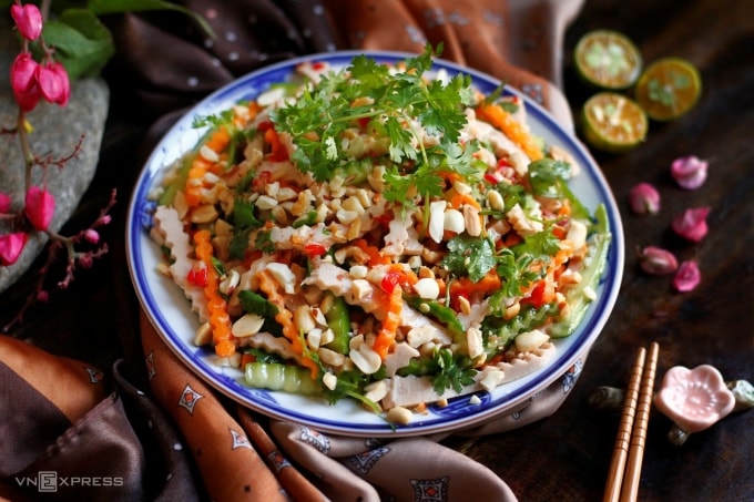 Thành phẩm: Đĩa nộm hoàn thiện có màu sắc hài hòa, nguyên liệu khô ráo. Vị chua cay mặn ngọt vừa phải, hậu vị thanh, giúp cân bằng những món nhiều đạm, nhiều dầu mỡ trong mâm cơm ngày Tết. Nên dùng ngay sau khi trộn để giữ độ giòn tươi.