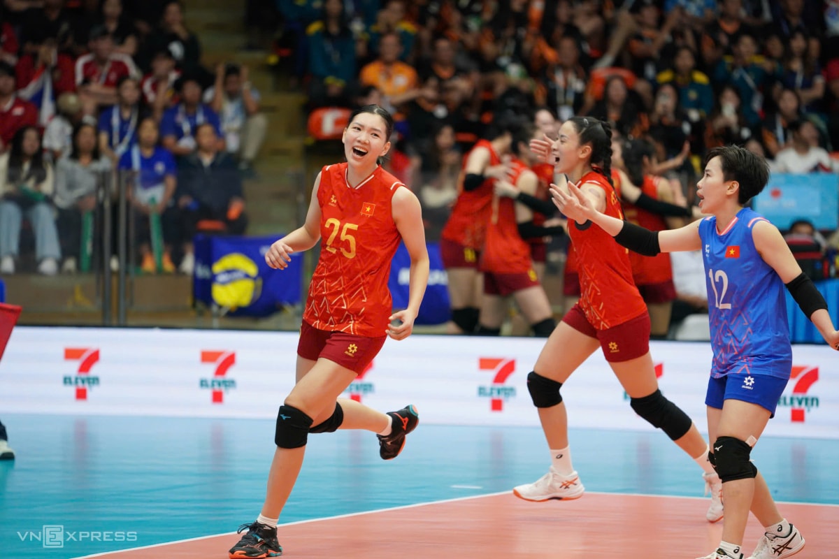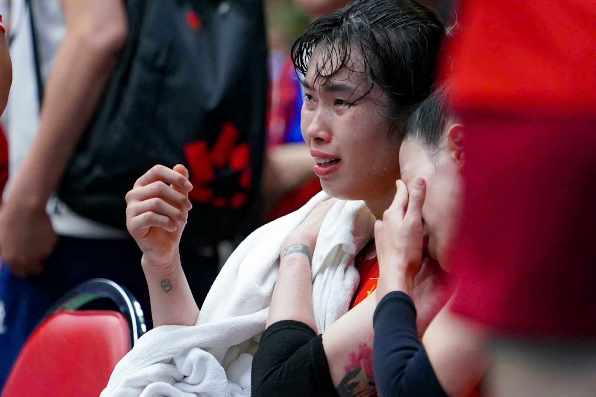 Lỡ chiến thắng lịch sử trước Thái Lan ở chung kết bóng chuyền nữ SEA Games 33, Trần Thị Thanh Thúy và nhiều đồng đội không cầm được nước mắt.