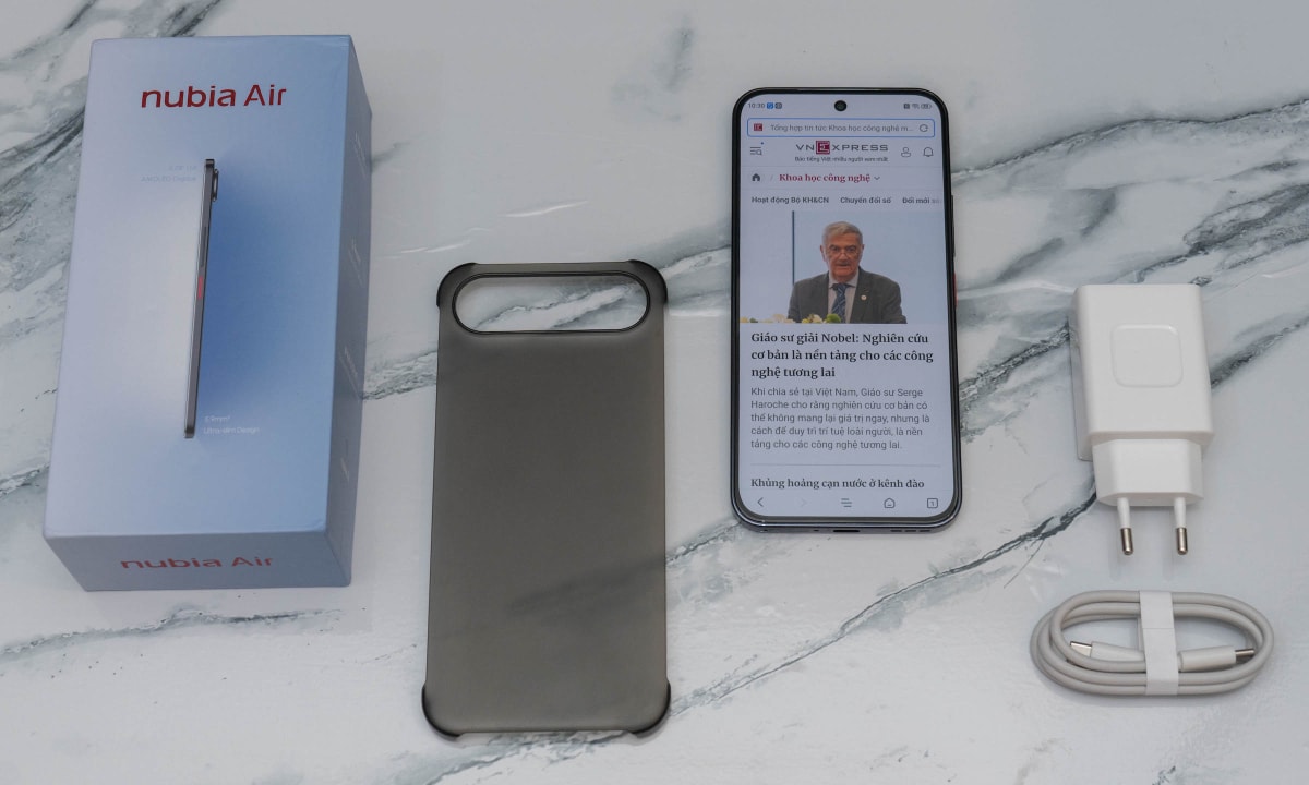 Điểm nổi bật của Nubia Air là thiết kế siêu mỏng nhẹ 5,9 mm và 172 gram. Trong khi đó, số đo trên iPhone Air là 5,6 mm và 165 gram, còn Galaxy S25 Edge là 5,8 mm và 163 gram. Hai model của Apple và Samsung đều thuộc phân khúc cao cấp có khung bằng titanium và giá trên 30 triệu đồng, còn Nubia Air sử dụng khung nhôm, nằm trong tầm giá 5 triệu đồng.