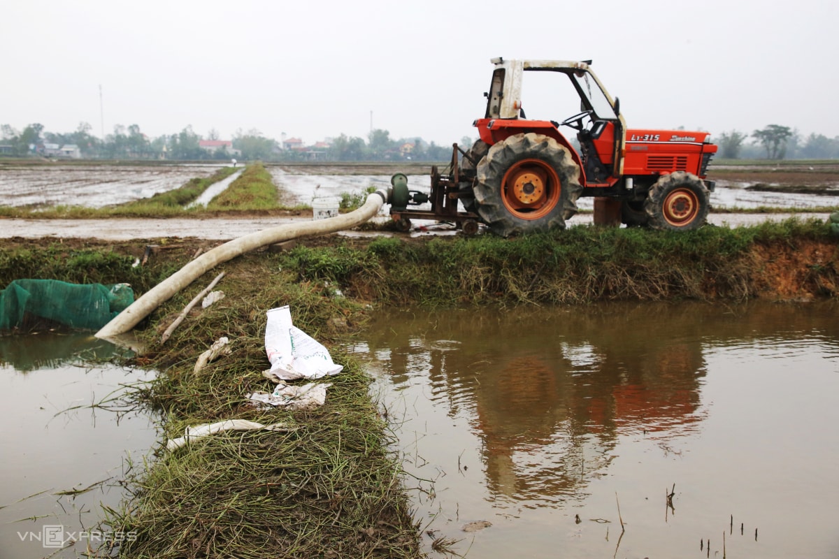 Người dân dùng máy cày cải tiến máy hút nước trên ruộng để gom cá lại ven bờ bắt. Mỗi hộ dân ở Tâm Mỹ nuôi ít vài sào, nhiều hơn 10 ha. Đây là mô hình "một vốn ba lời".