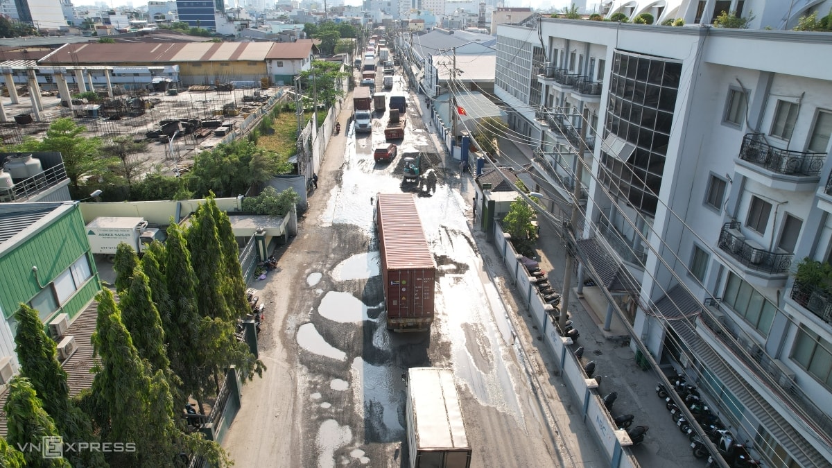 Đại diện UBND phường Tân Thuận cho biết, mật độ xe ra vào cảng lớn khiến hệ thống thoát nước hư hỏng, rò rỉ. Tuyến đường trước đây do Ban quản lý dự án khu vực quận 7 phụ trách nâng cấp, nhưng sau sáp nhập đã chuyển về phường.