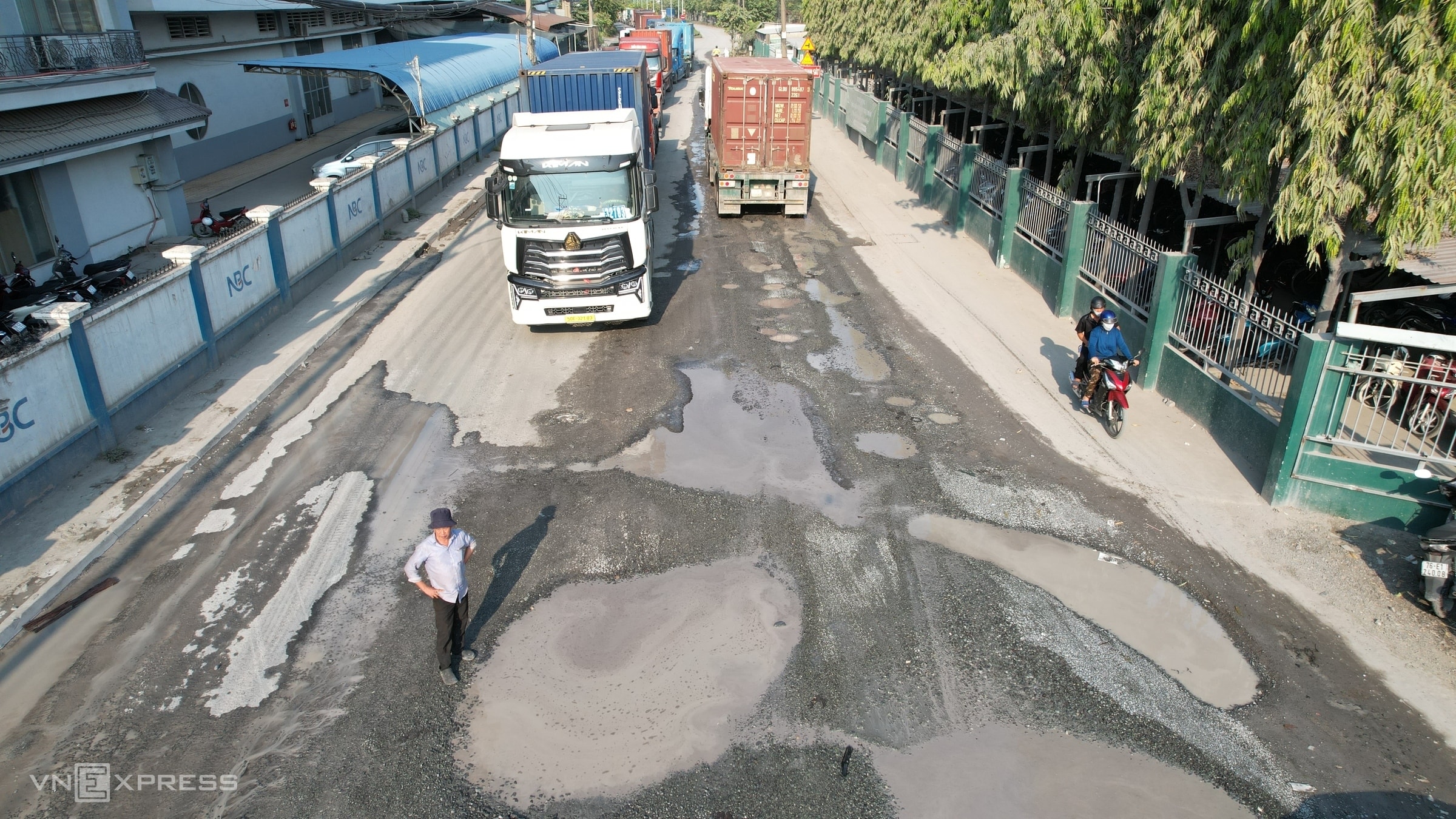 Mặt đường lòi lõm khiến xe máy phải chạy lên vỉa hè còn ôtô phải luồn lách qua những nơi ngập sâu. Tình trạng đường hư hỏng bắt đầu khoảng hai tháng qua và ngày càng lan rộng.