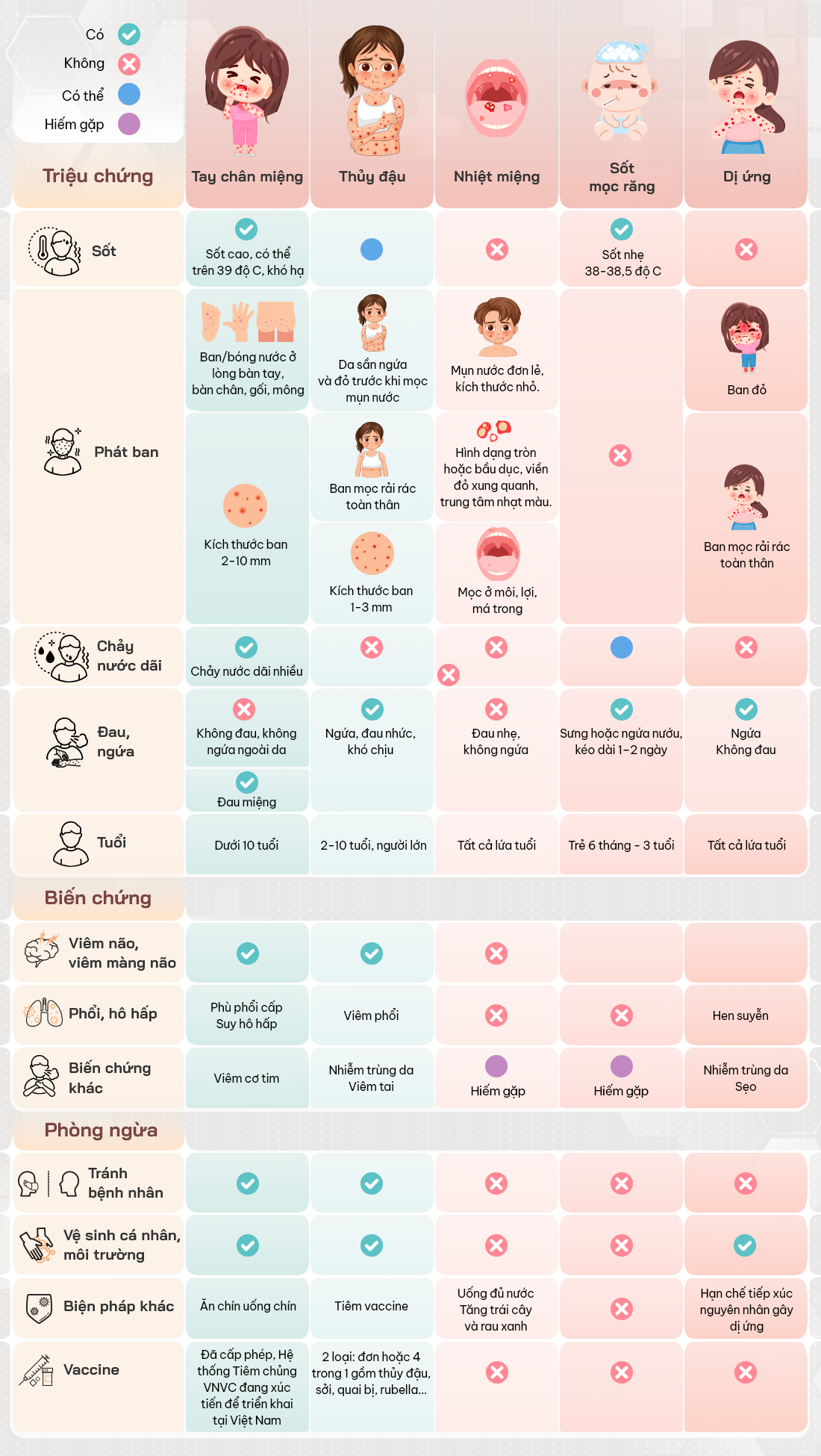 Phân biệt triệu chứng tay chân miệng với sốt mọc răng, dị ứng