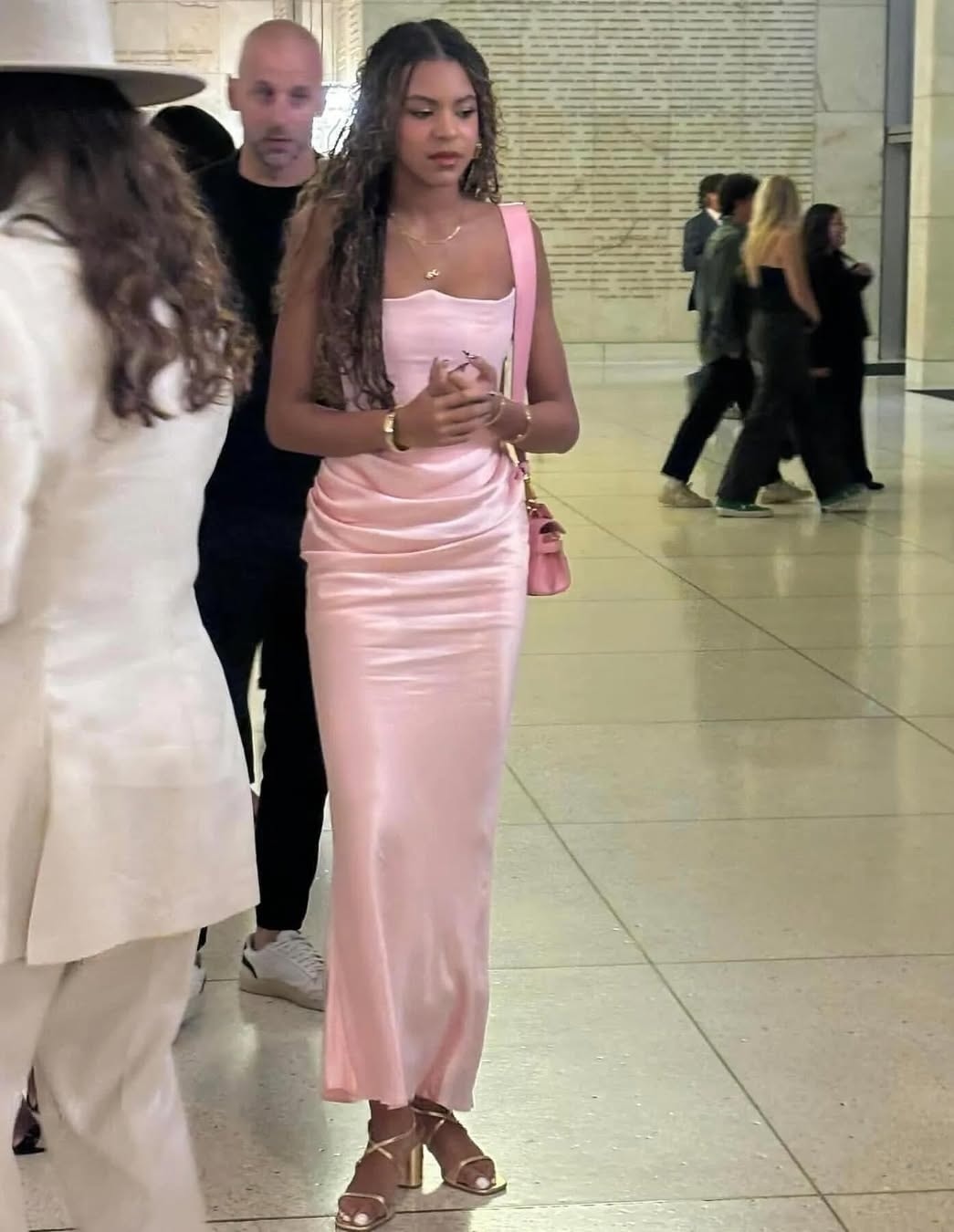 Blue Ivy Carter - con gái 14 tuổi của danh ca Beyoncé - cao 1,75 m, thường diện mốt Y2K, đầm dự tiệc cắt xẻ.