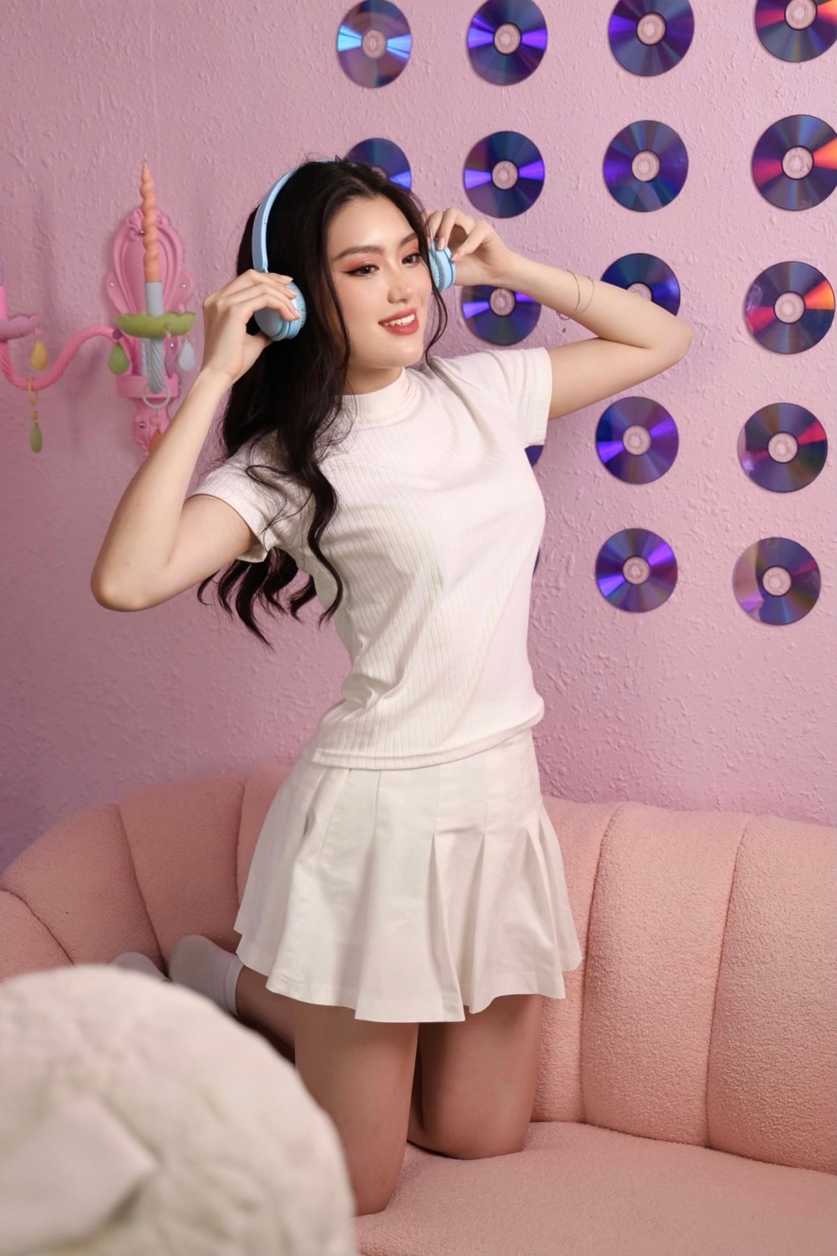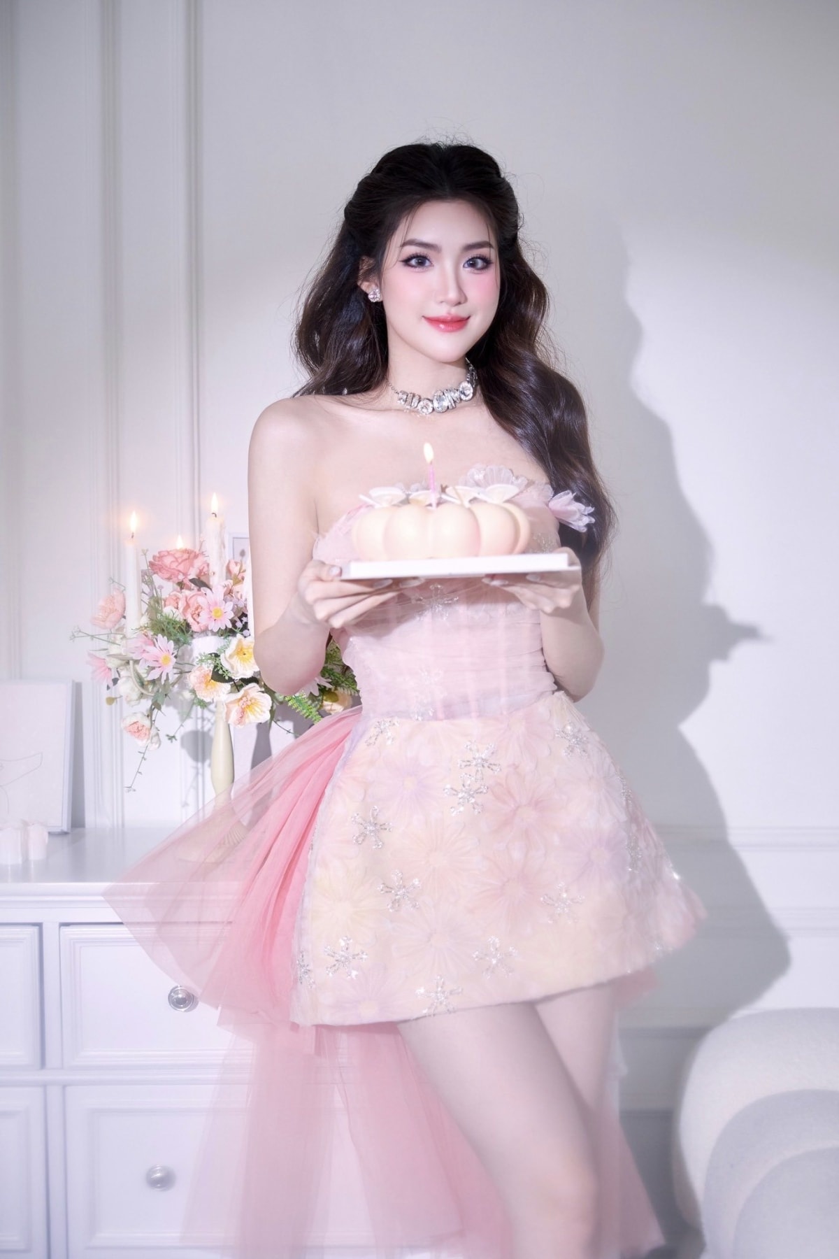 Hoa hậu có nhiều trang phục sắc hồng tôn da sáng. Lựa chọn này phù hợp với phong cách "kẹo ngọt" mà Phương Oanh yêu thích.