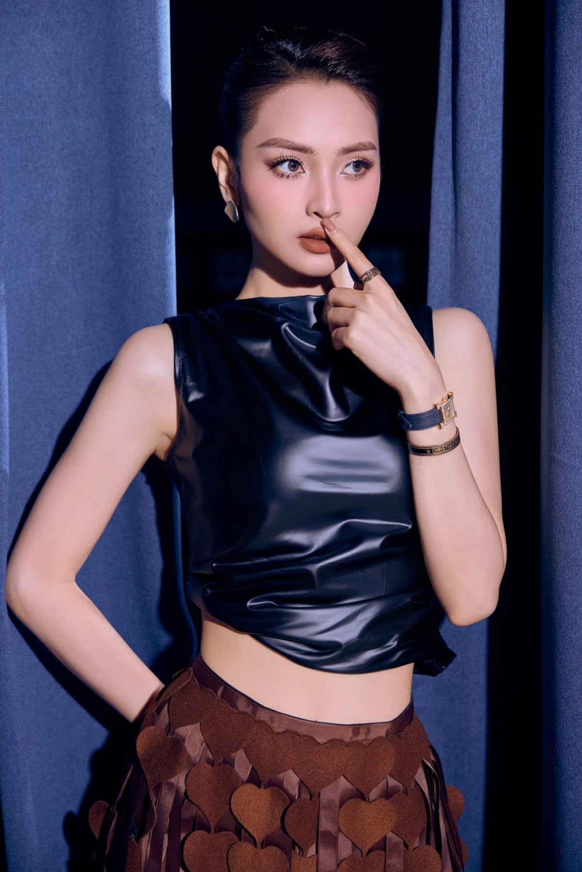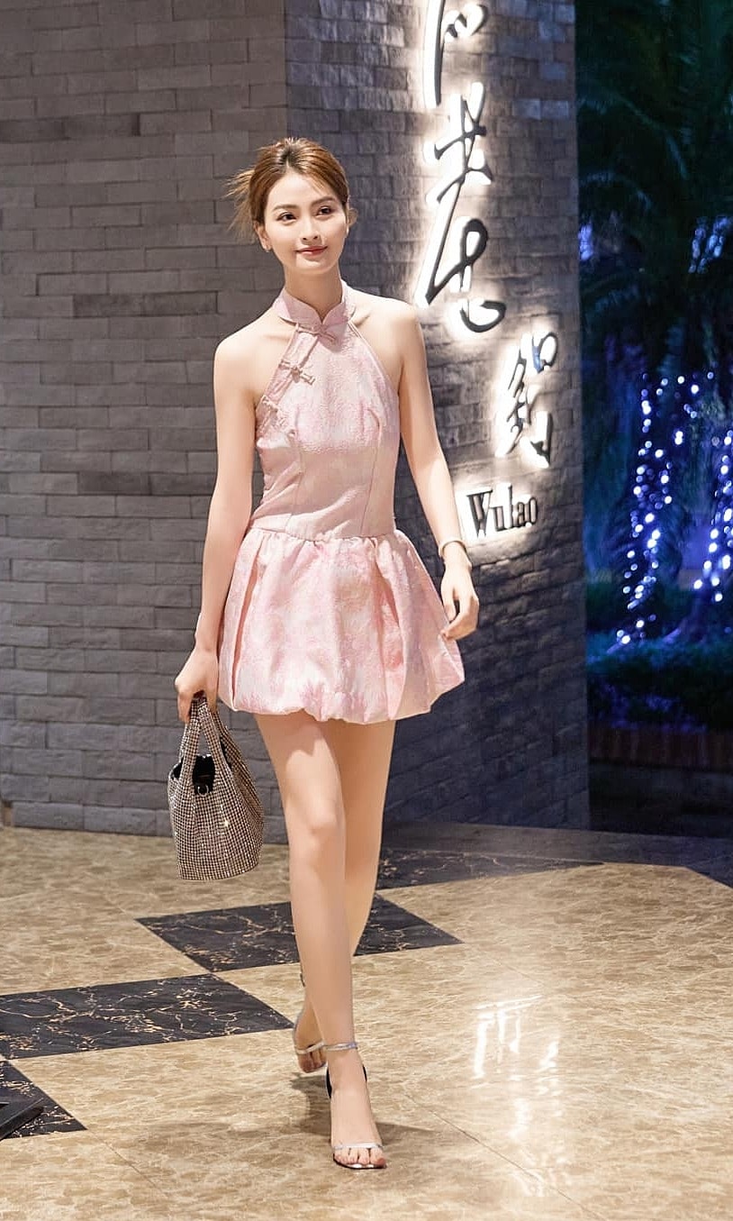 MC Huyền Trang (biệt danh Mù Tạt), vợ cầu thủ Đức Huy, thích mặc các loại váy ngắn tôn chiều cao 1,7 m.