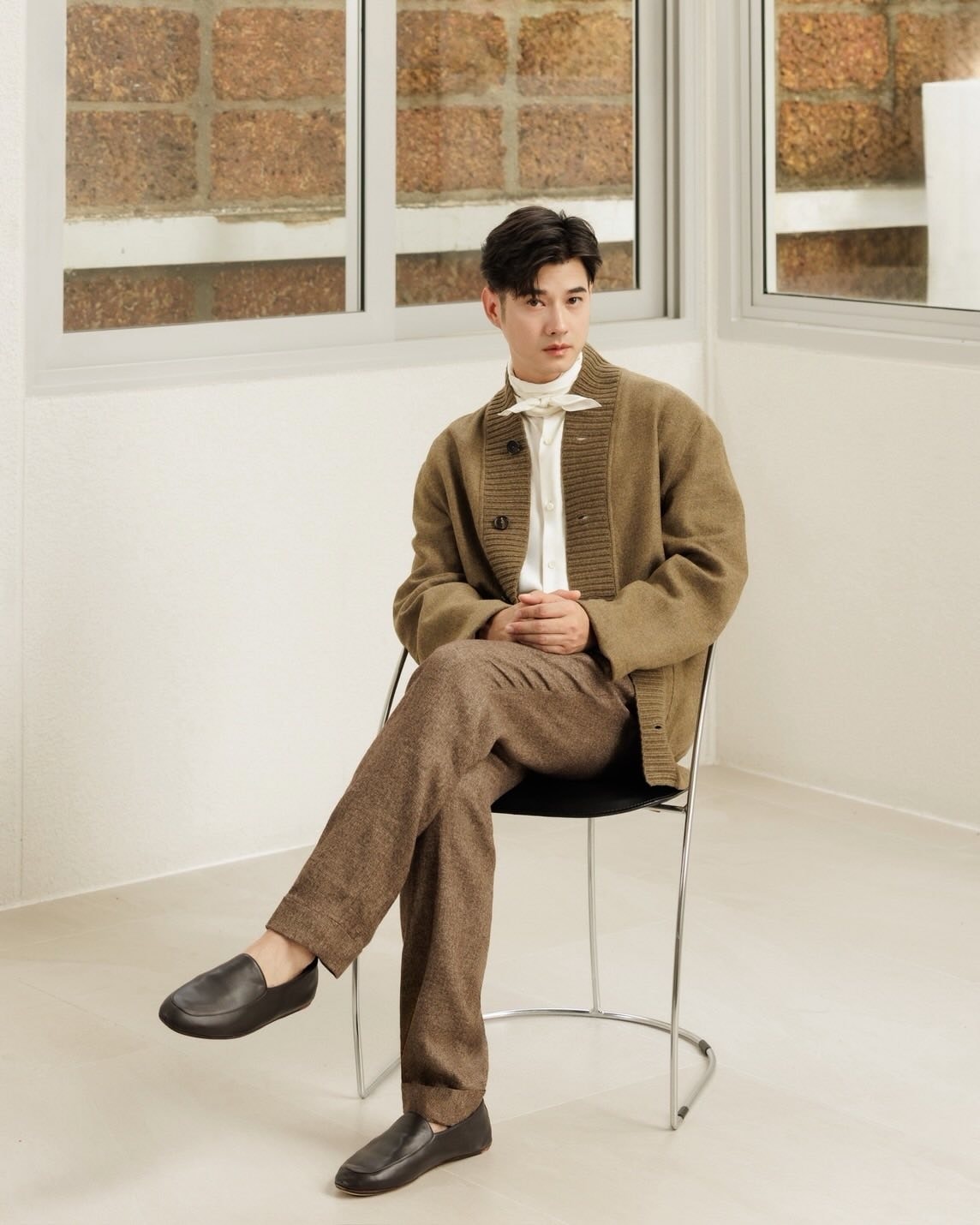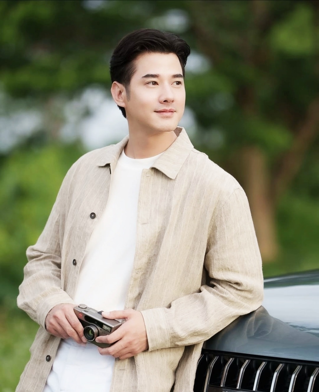 Diễn viên chuộng gam trung tính vì dễ phối đồ, phù hợp nhiều hoàn cảnh. Mario Maurer sinh năm 1988, mang ba dòng máu Thái Lan, Đức, Trung Quốc. Anh gia nhập làng giải trí năm 2004, từng đóng các phim The love of Siam, A little thing called love (Mối tình đầu), Tình người duyên ma, Lời nguyền của quỷ, Ánh dương tình yêu, Trò chơi vương quyền, Hẹn ước tình yêu, Công tử về vườn, Thầy lang trúng mánh.