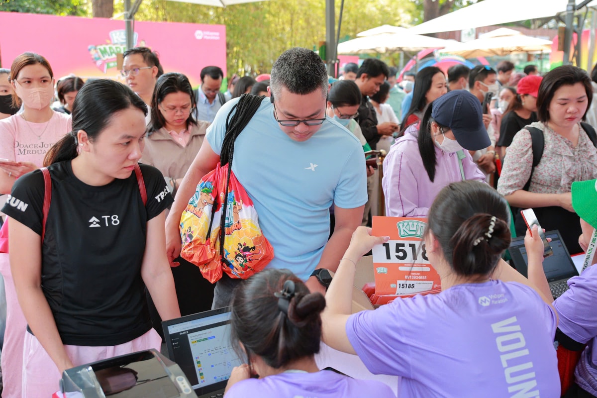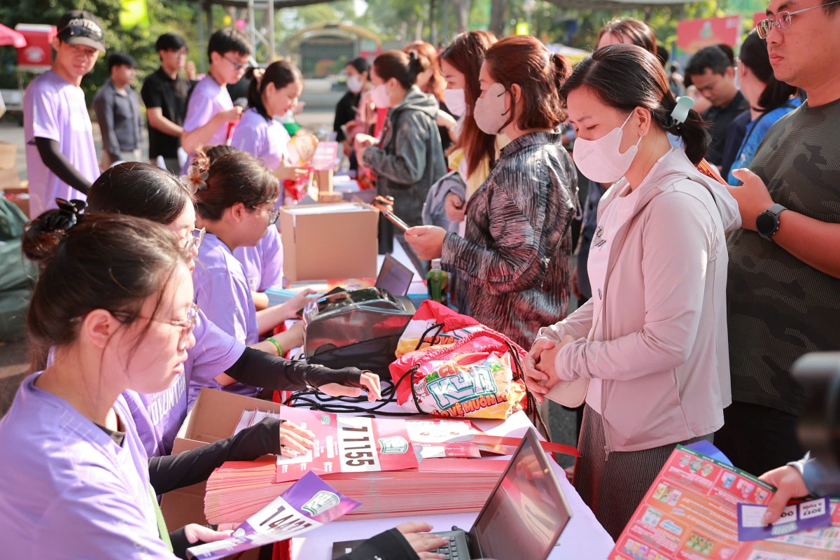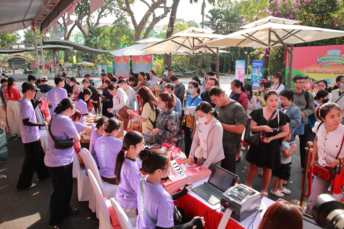 Hàng trăm phụ huynh có mặt tại Thảo Cầm Viên từ sáng sớm để nhận Bib Kun Marathon, háo hức trước chuỗi hoạt động tương tác bảo vệ muôn loài.
