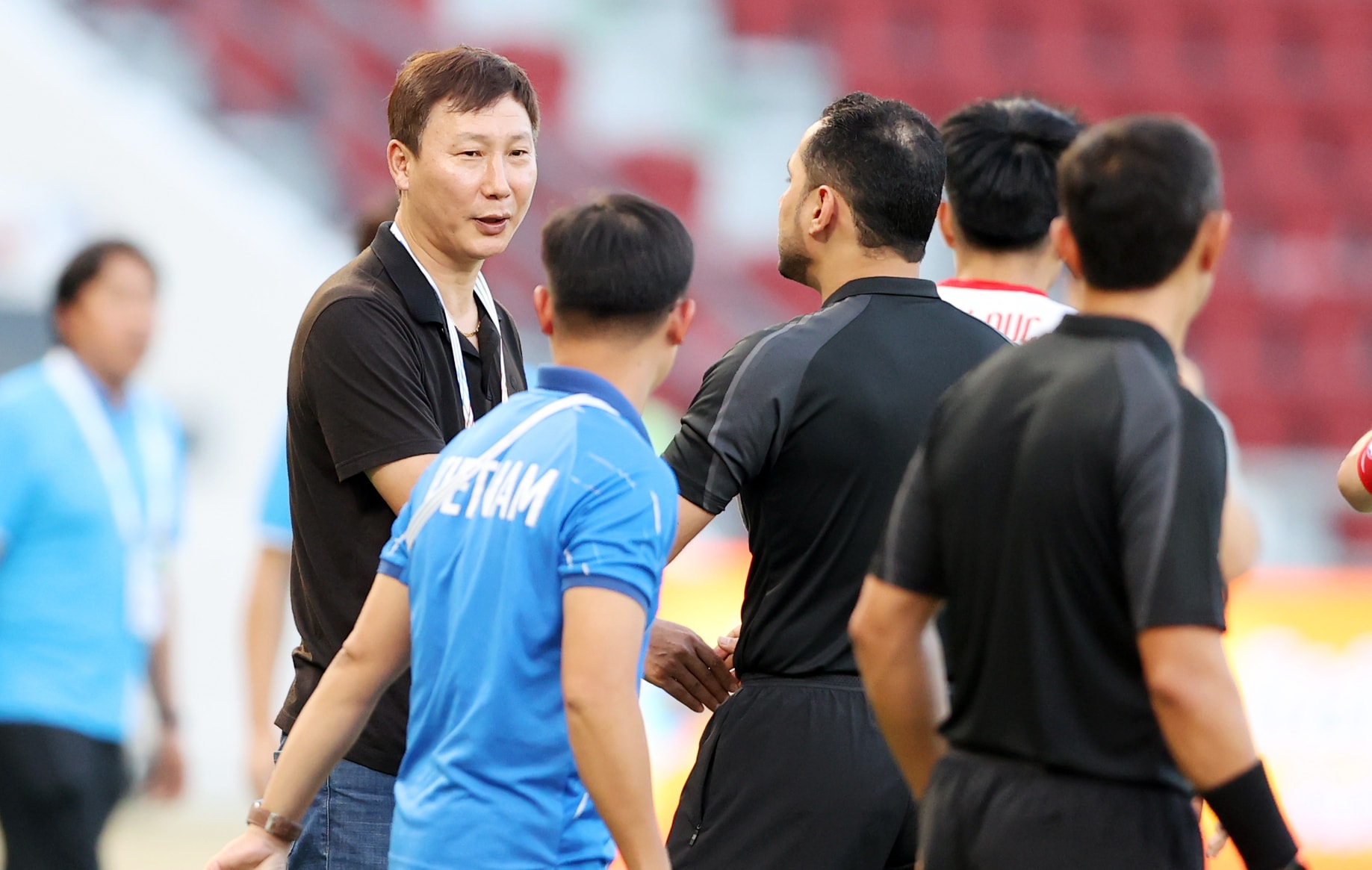 HLV Kim Sang-sik nổi nóng, phản ứng gay gắt và phải nhận thẻ vàng khi trọng tài định tước bàn thắng của Nguyễn Đình Bắc, ở trận ra quân SEA Games 33.