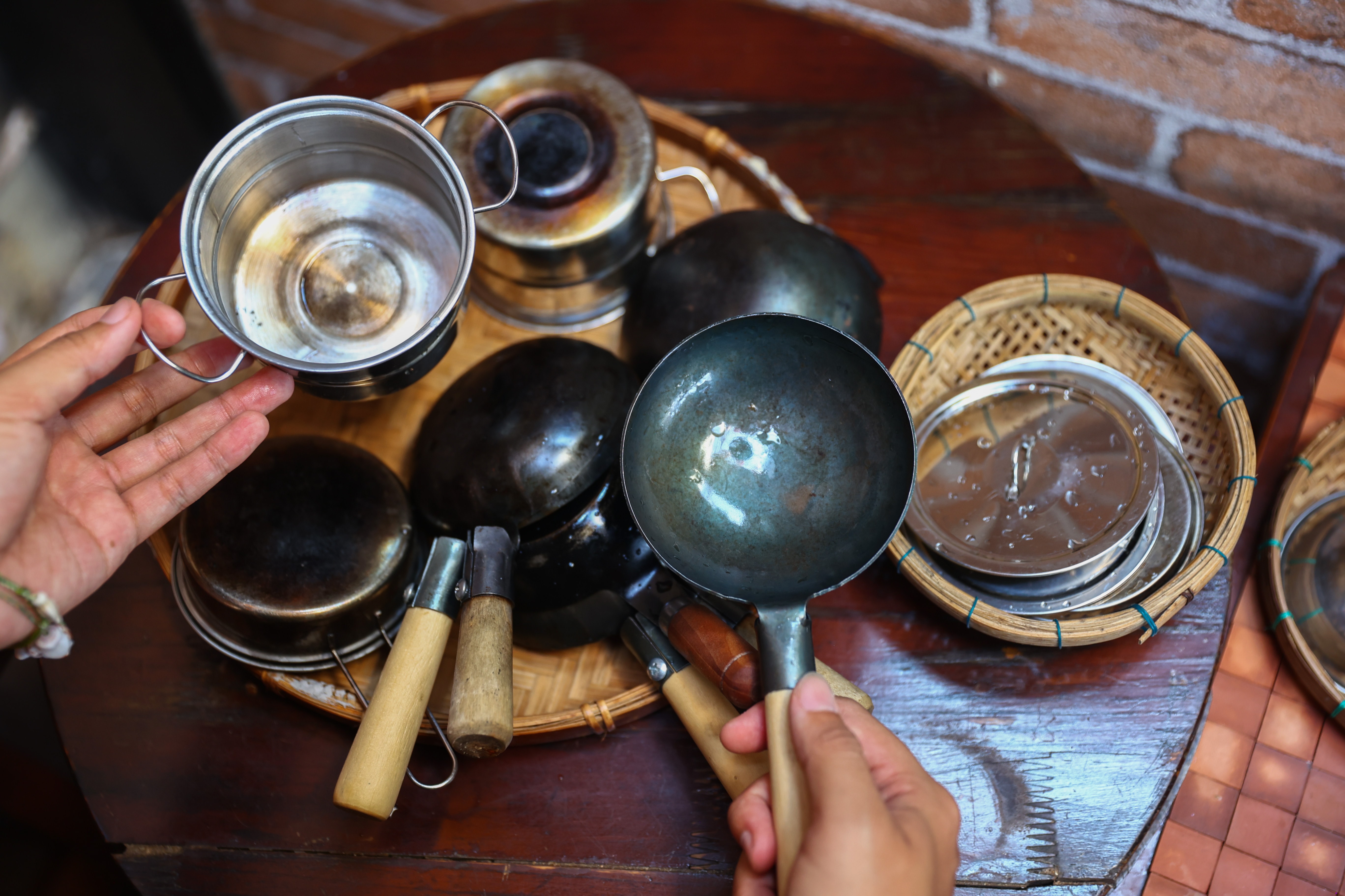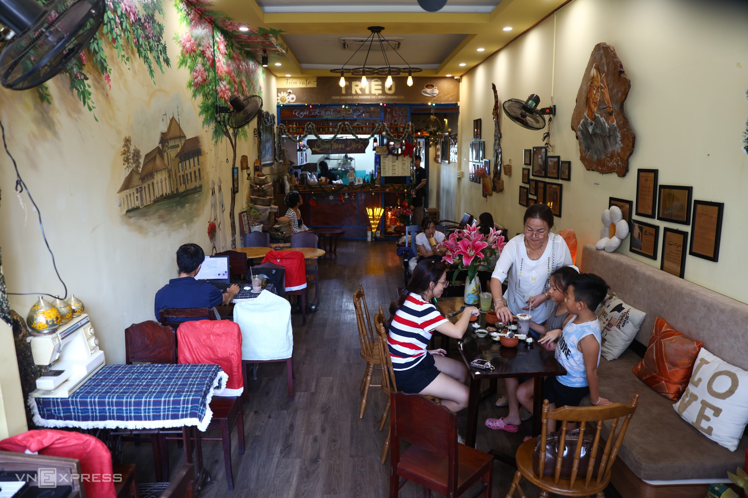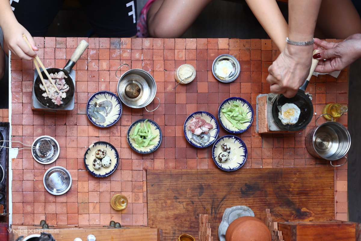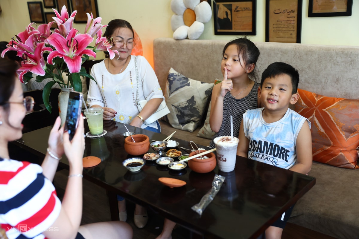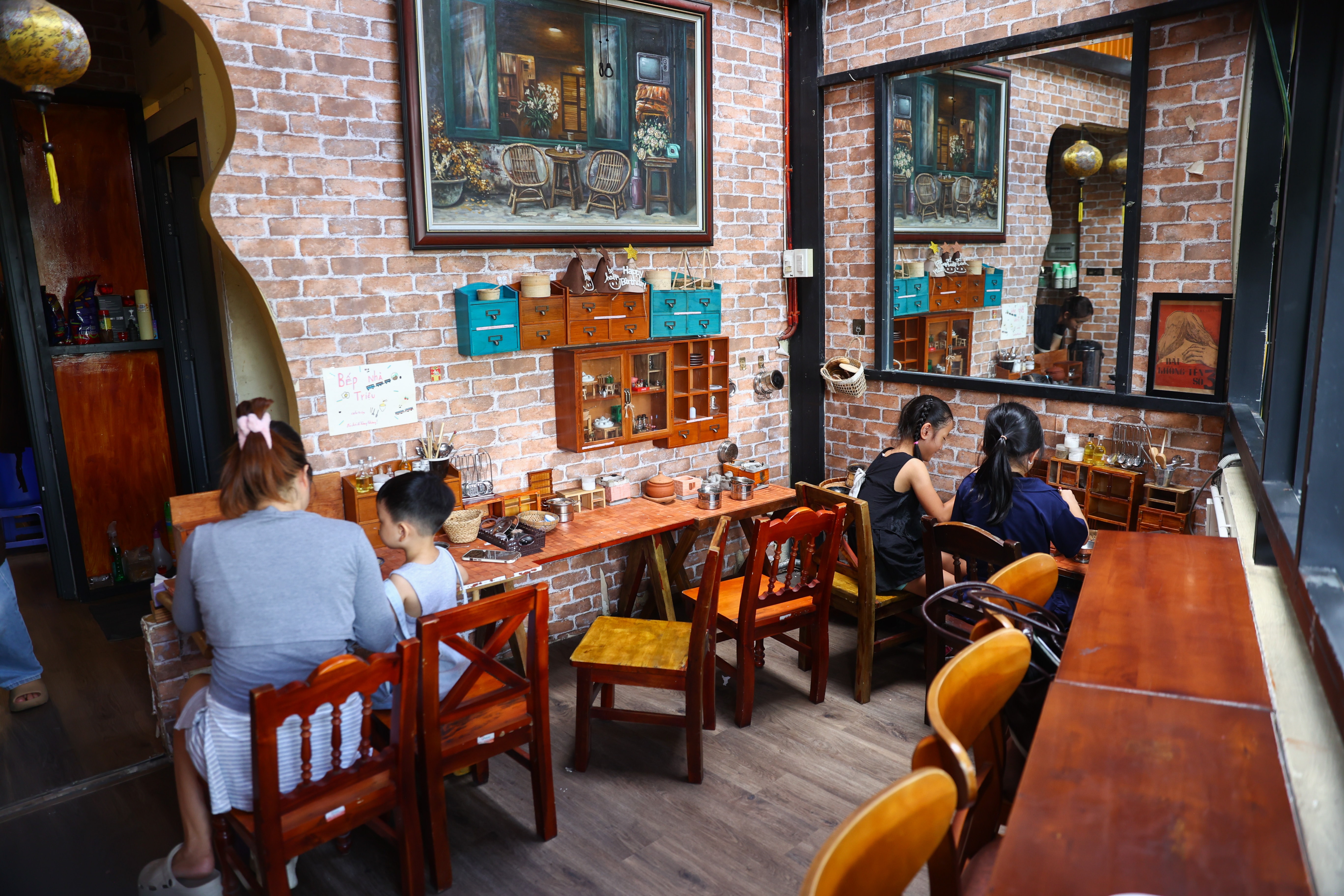 Quán nằm trên đường Nguyễn Xí, thiết kế căn bếp cho khách trải nghiệm nấu ăn bằng các vật dụng tí hon, thu hút nhiều trẻ em trải nghiệm.