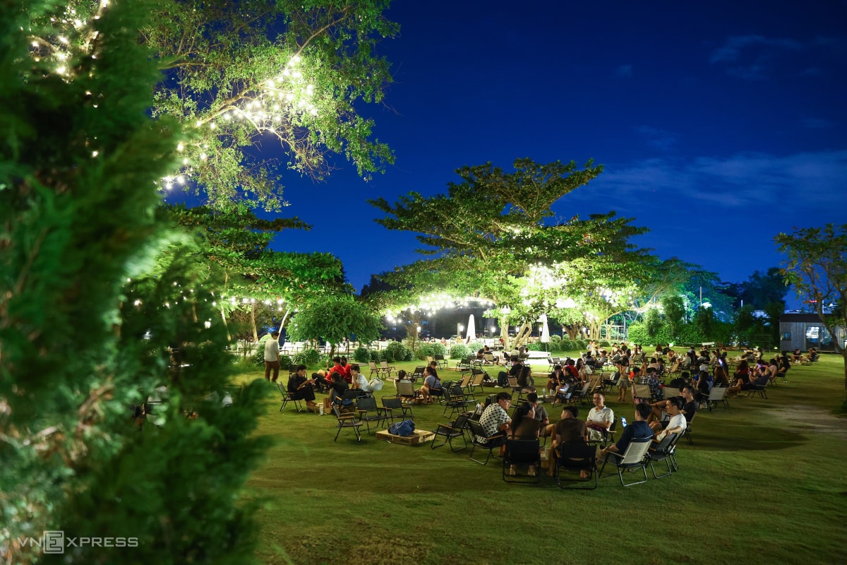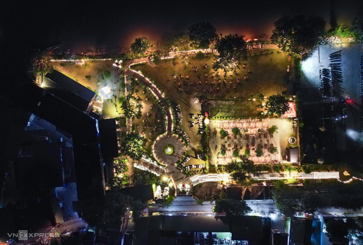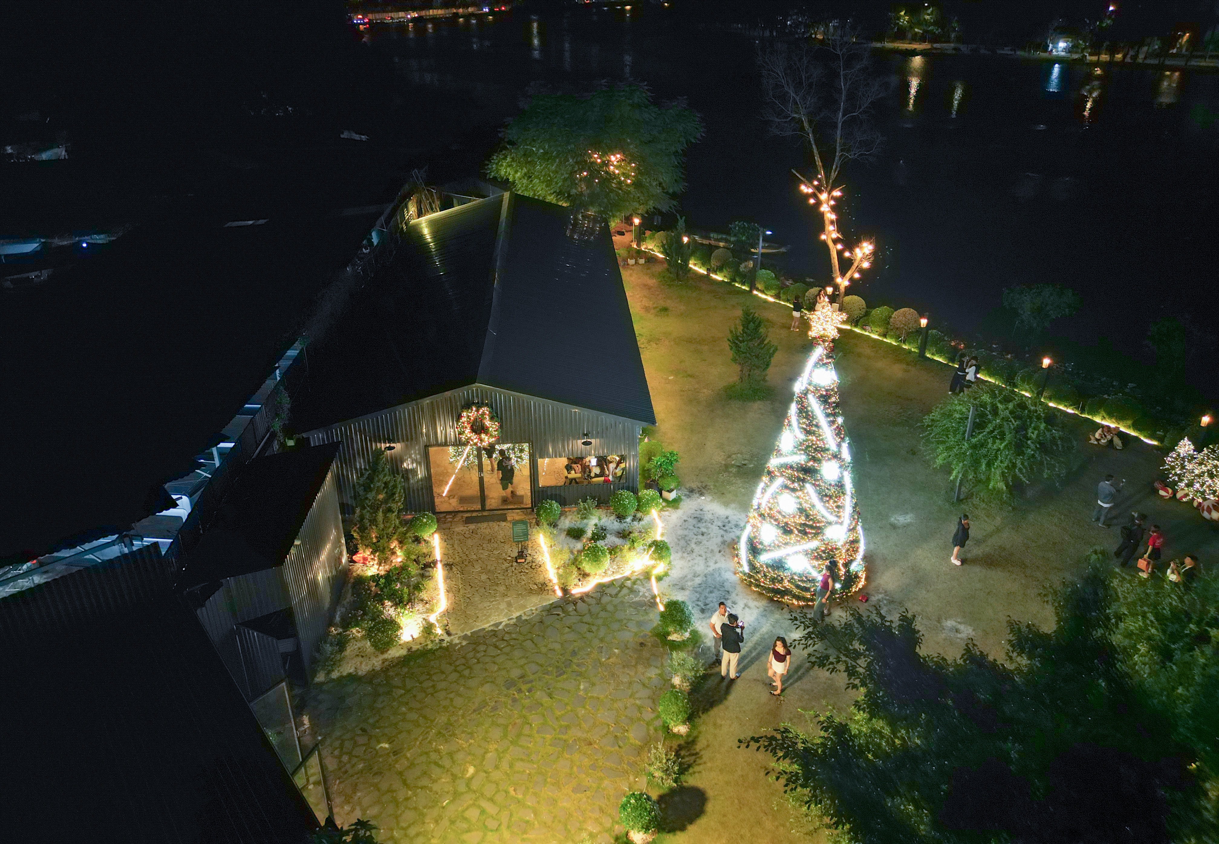 Quán nằm ở phường Tân Hưng rộng 10.000 m2, được trang trí hơn 200 cây thông cùng nhiều tiểu cảnh Giáng sinh, thu hút hàng trăm khách đến check in mỗi ngày.