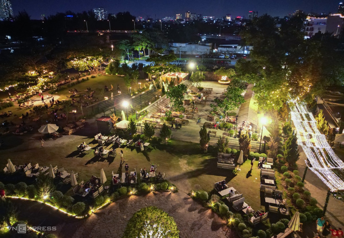 Quán cà phê thiết kế hàng trăm cây thông như 'Công viên Giáng sinh' ở TP HCM