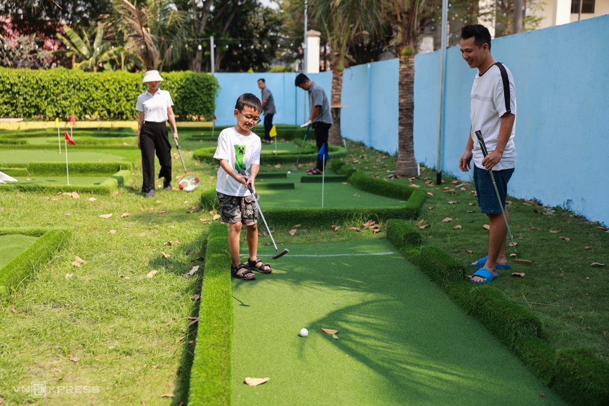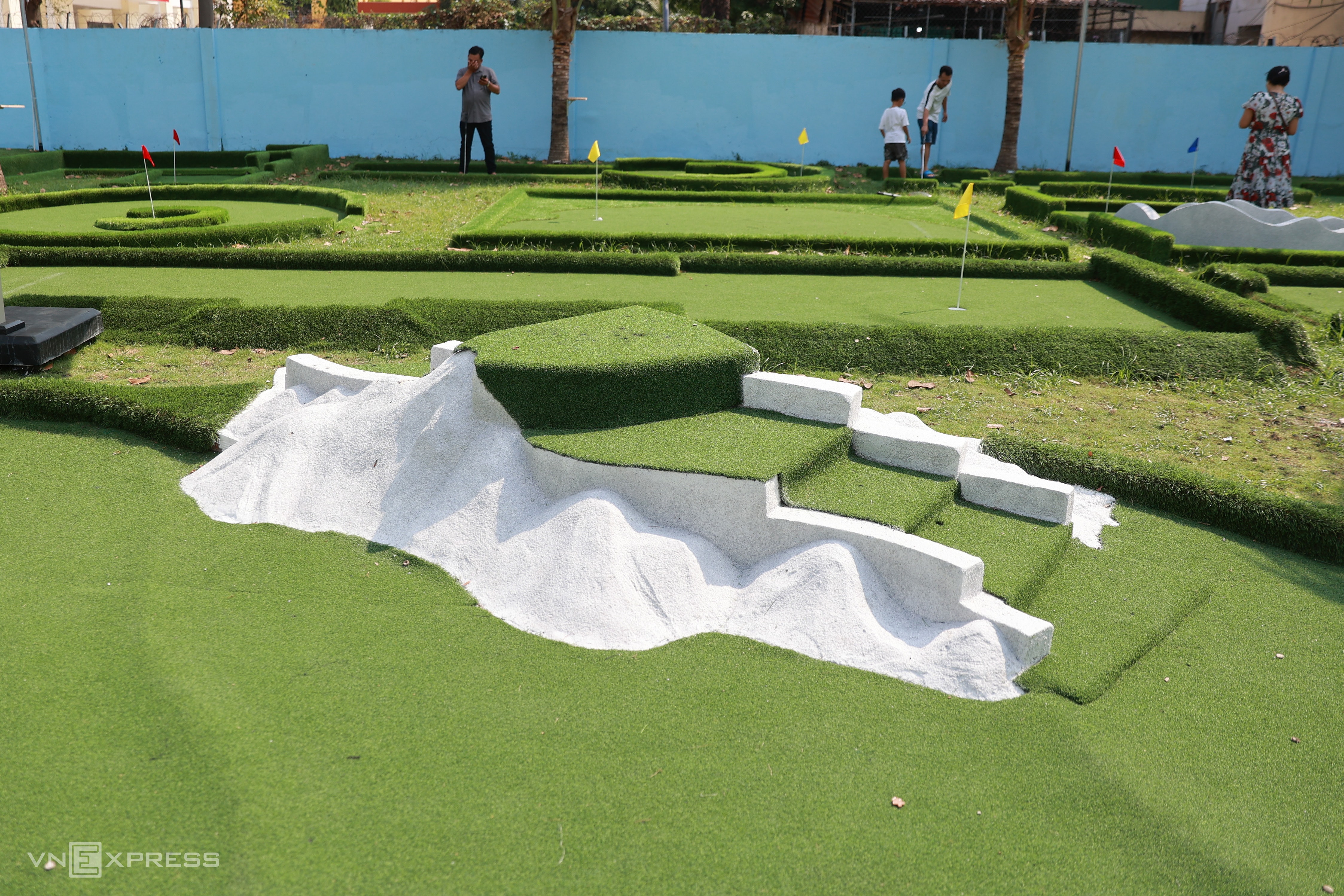 "Mỗi dạng chỉ làm diện tích nhỏ chứ không thể nào lớn như sân golf thật được, mục đích để khách trải nghiệm môn thể thao này", anh Kiên nói.