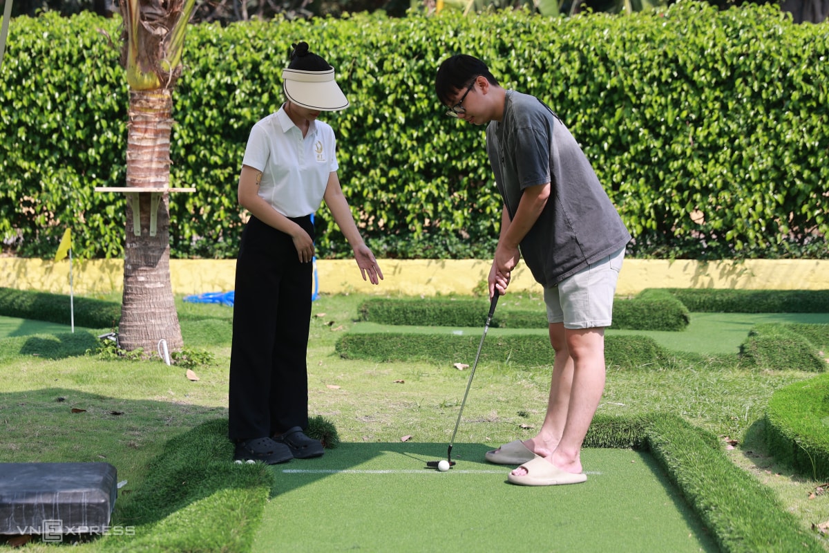 Anh Võ Thành Tuyên, 27 tuổi, đưa con 7 tuổi tới trải nghiệm chơi golf, sau khi biết đến quán qua các clip trên mạng xã hội. Anh cho biết mức giá này chấp nhận được và sẽ quay trở lại lần sau.