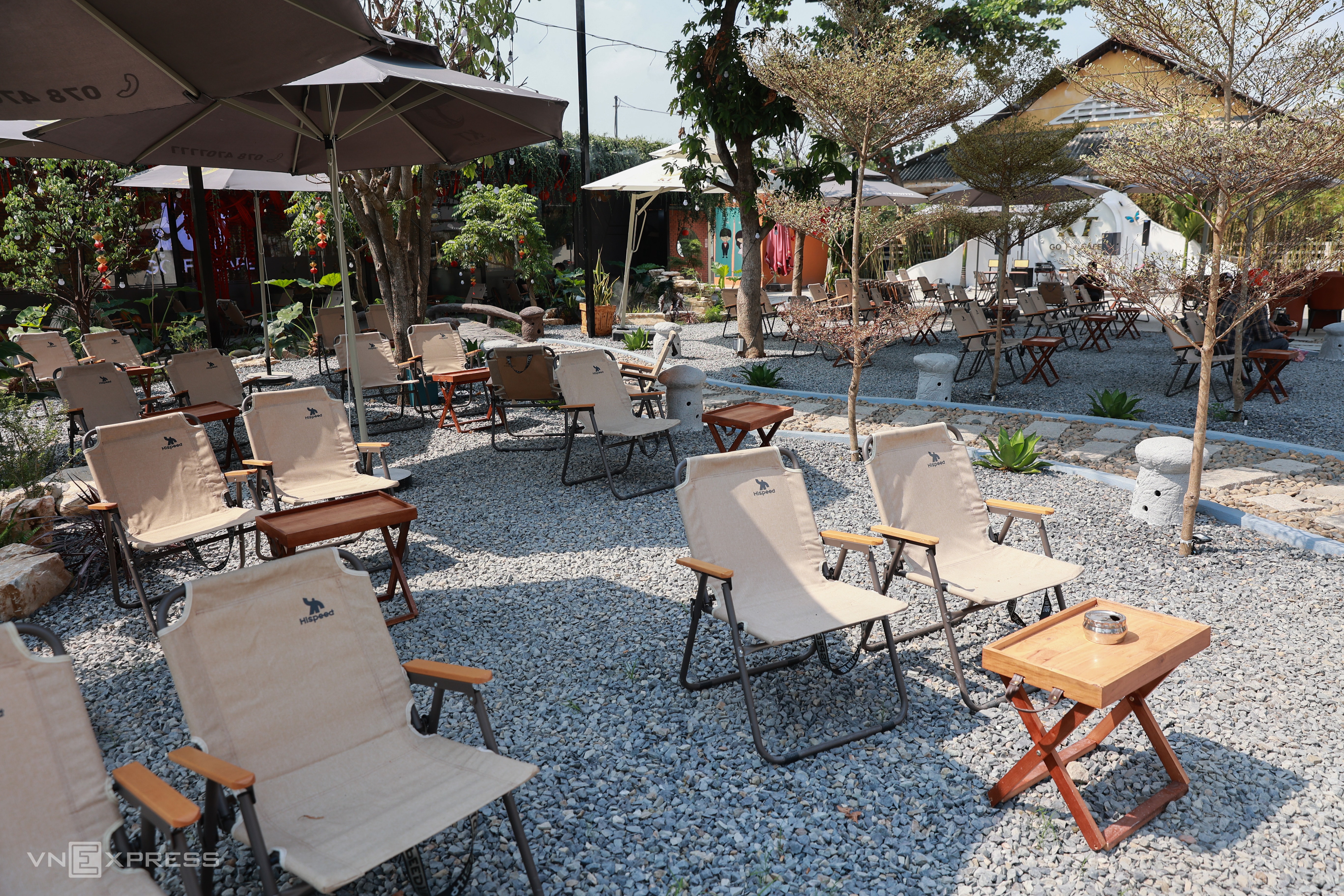 Quán cà phê nằm ở phường An Nhơn rộng khoảng 700 m2, có loạt sân golf mini nhiều dạng địa hình cho khách thử sức, với giá 120.000 đồng hai giờ trải nghiệm.