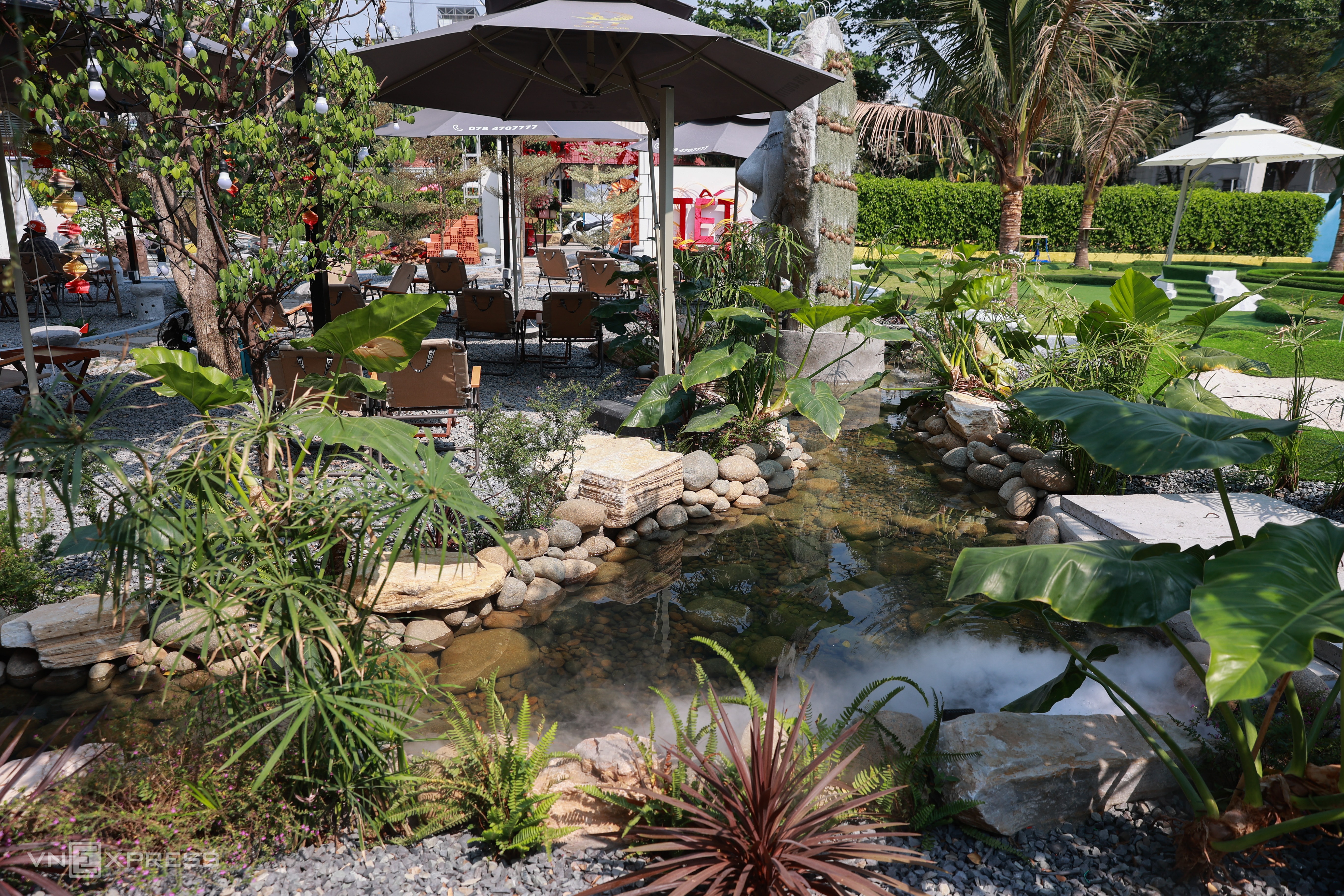 Chủ quán Lưu Viết Kiên, 35 tuổi cho biết thuê khu đất rộng 1.800 m2, dự kiến làm cà phê sân vườn, sau đó thấy mô hình golf mới lạ, chưa ai triển khai nên quyết định đầu tư. Anh cải tạo lô đất, làm tiểu cảnh và dành 700 m2 để làm sân golf mini.