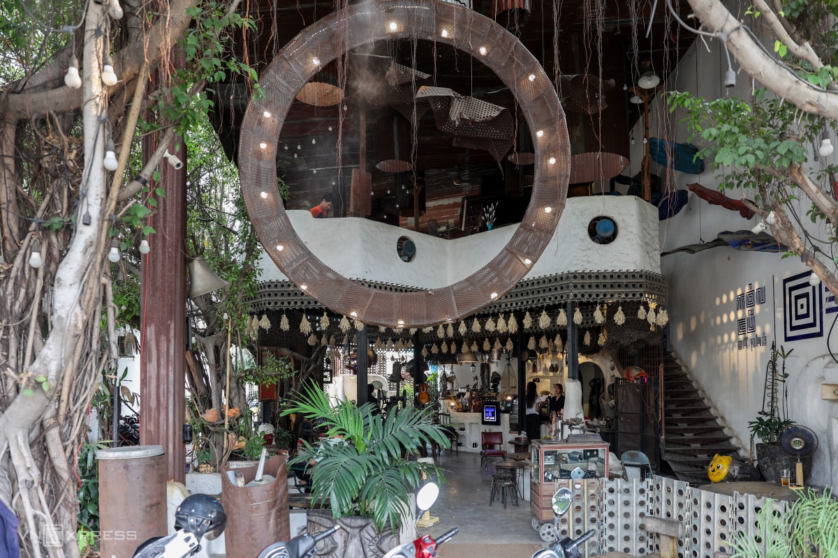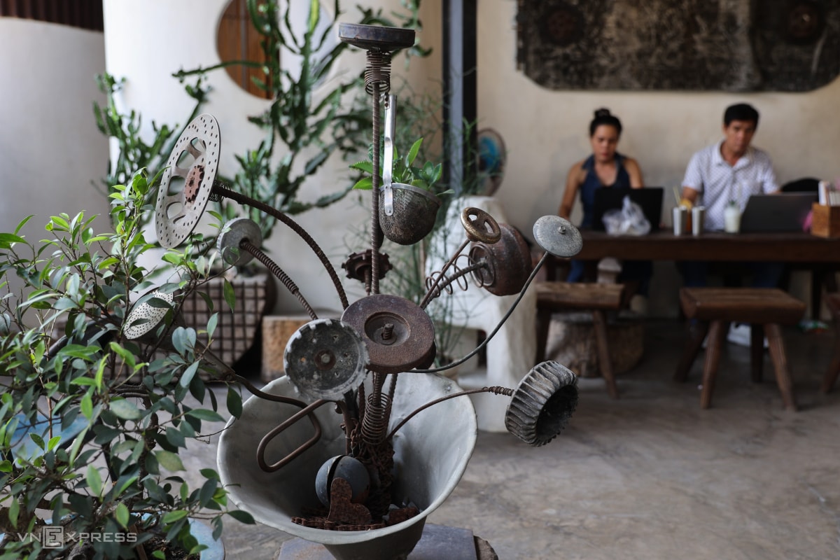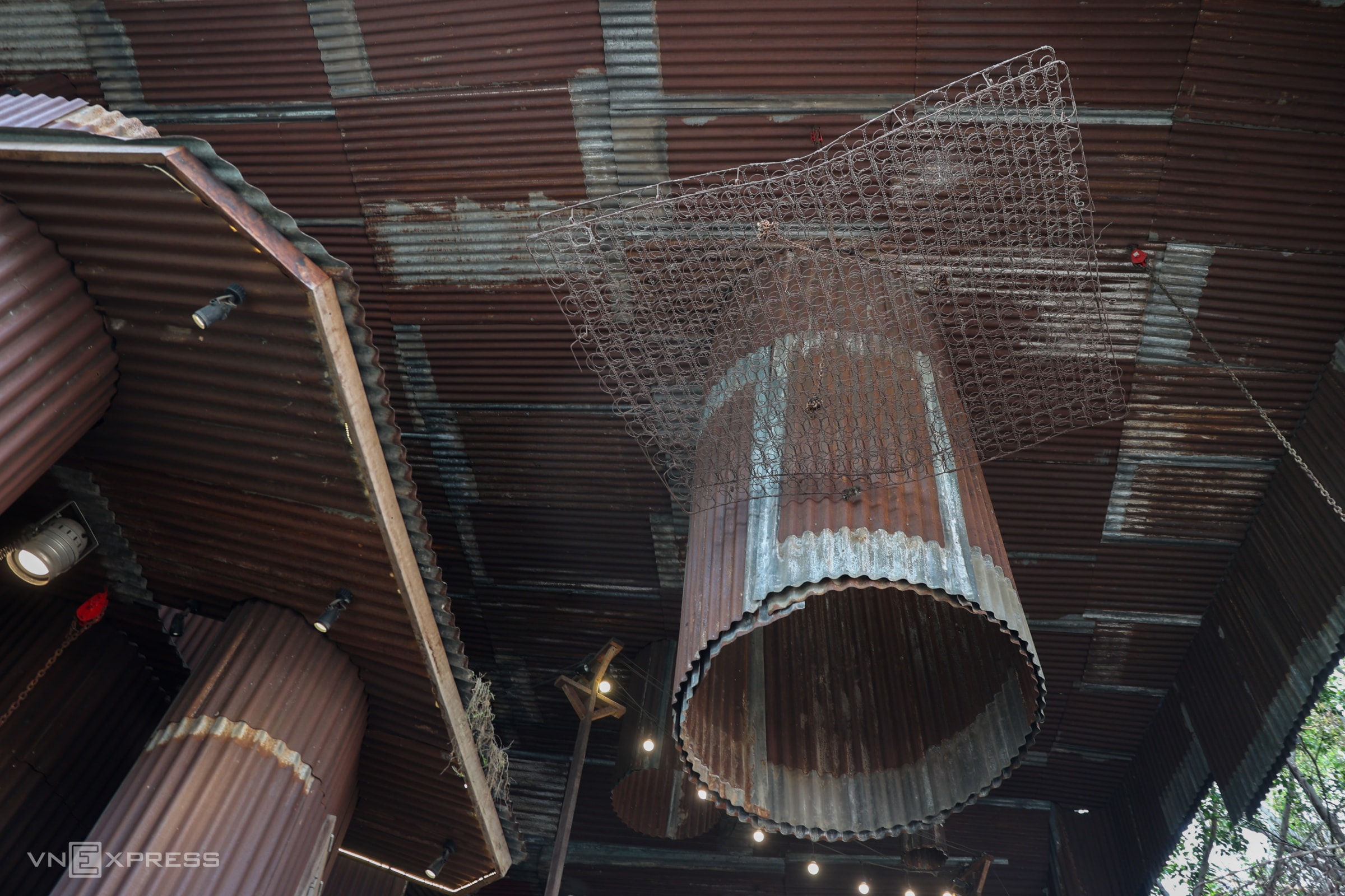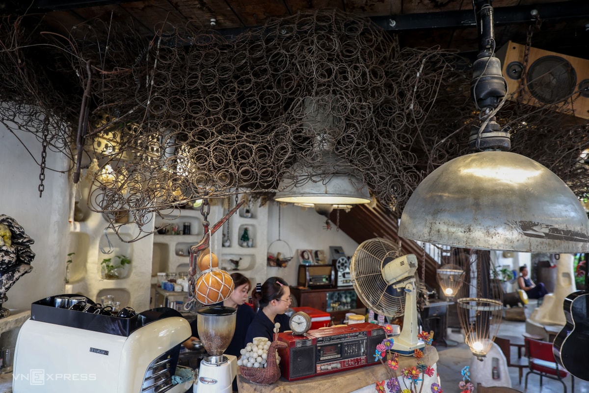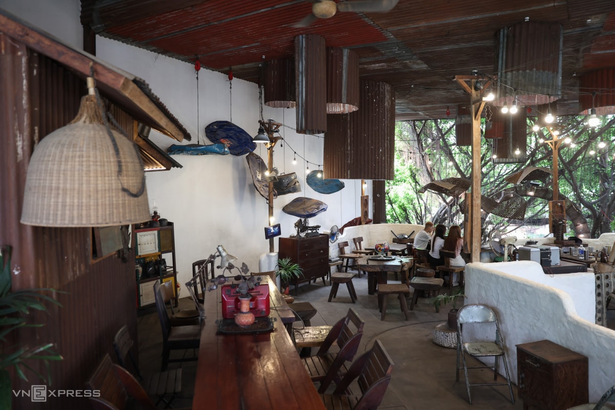 Quán cà phê trang trí bằng sắt thép cũ ở TP HCM