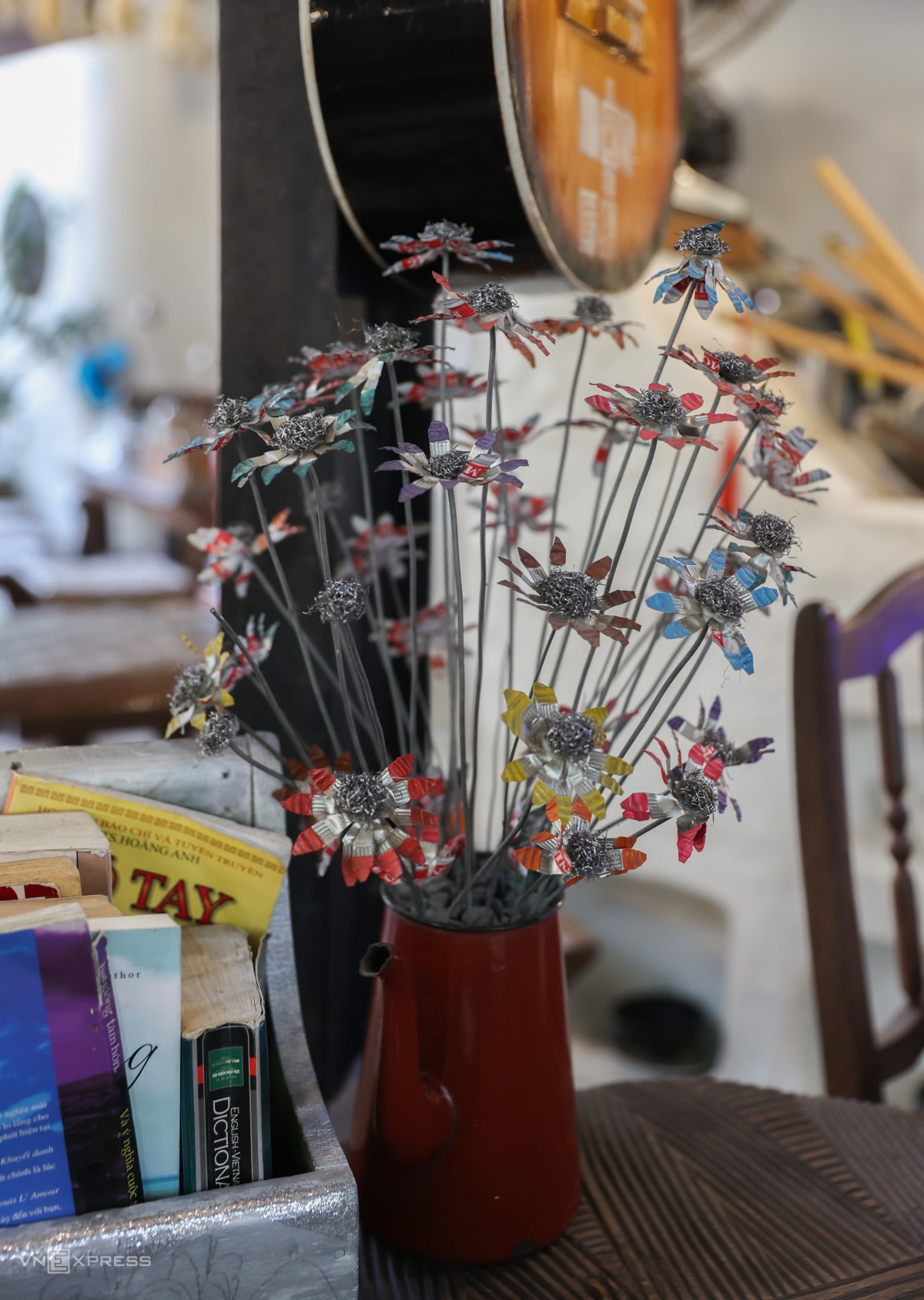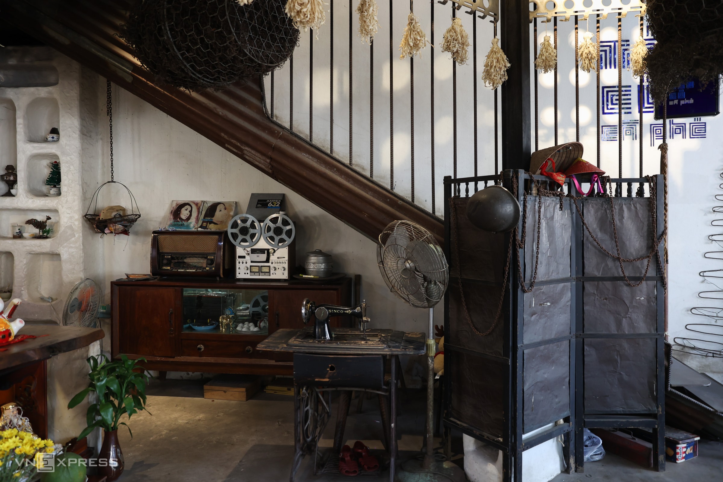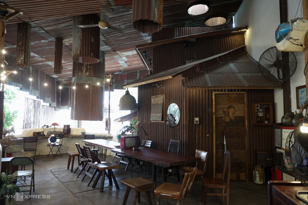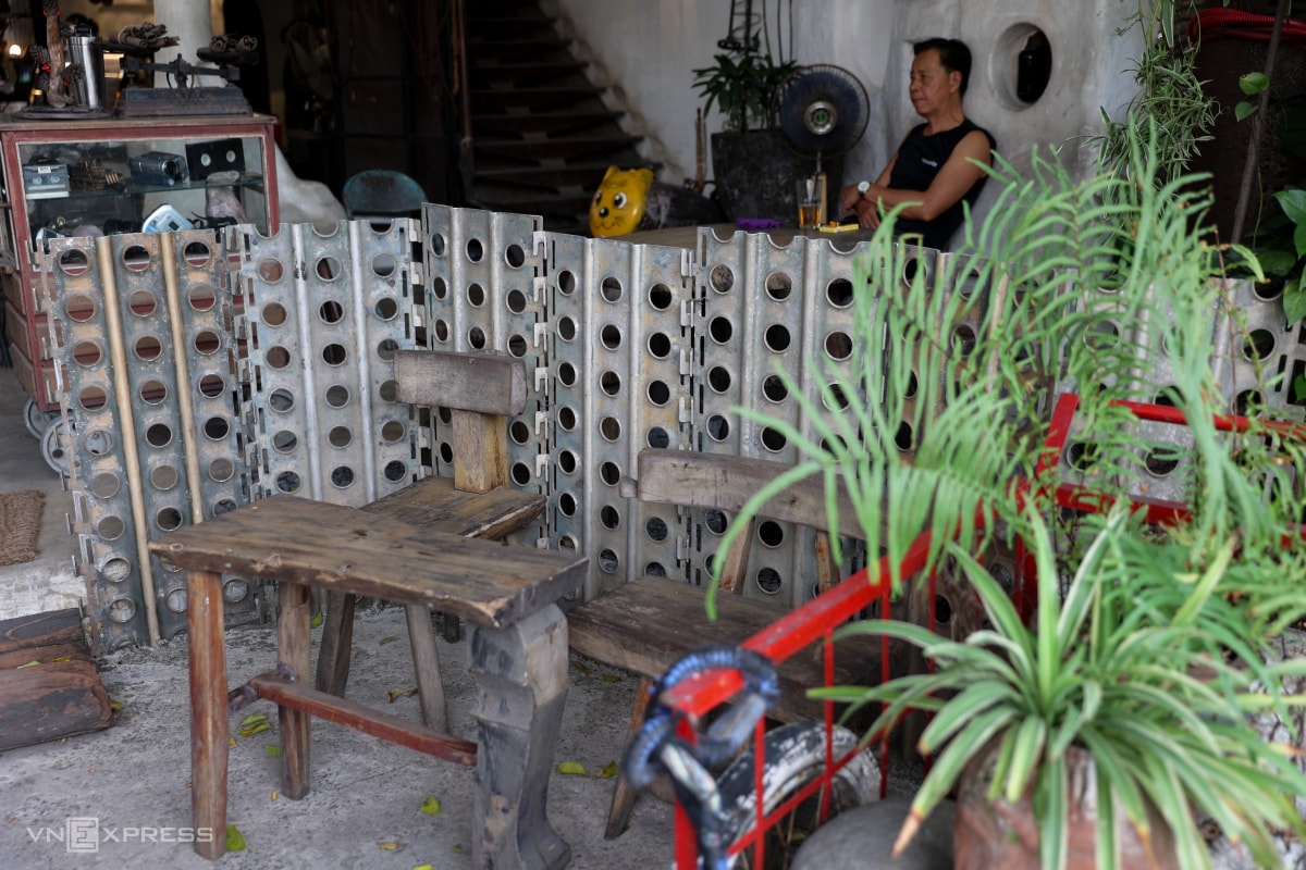 Anh Mai Đình Vinh chi hơn một tỷ đồng mua tôn cũ cùng nhiều phế liệu, sắt thép, đồ cũ để tái chế và trang trí quán cà phê.