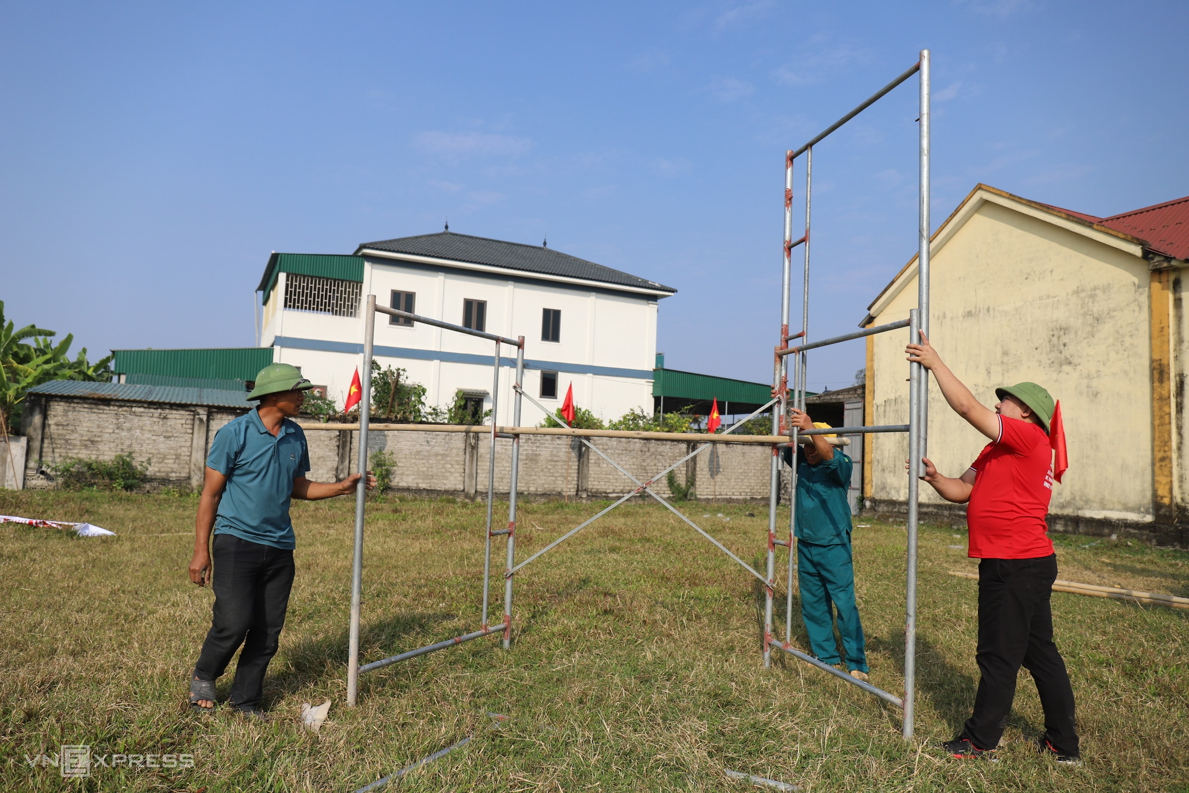 Người dân xóm Hưng Yên Bắc 2 đã gác mọi công việc đồng áng, cùng ra sân vận động hỗ trợ Ban tổ chức làm sân khấu để cổ vũ.