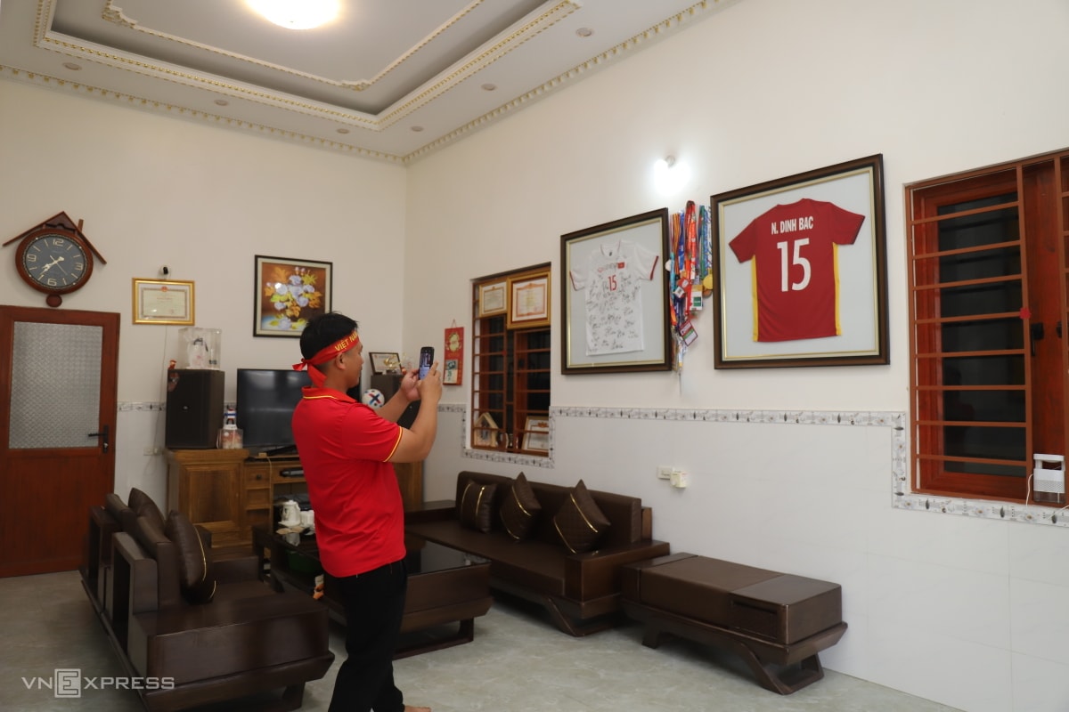 Cách sân vận động khoảng 300 m, tại nhà cầu thủ Đình Bắc, nhiều người hâm mộ đã tới chụp ảnh kỷ niệm.