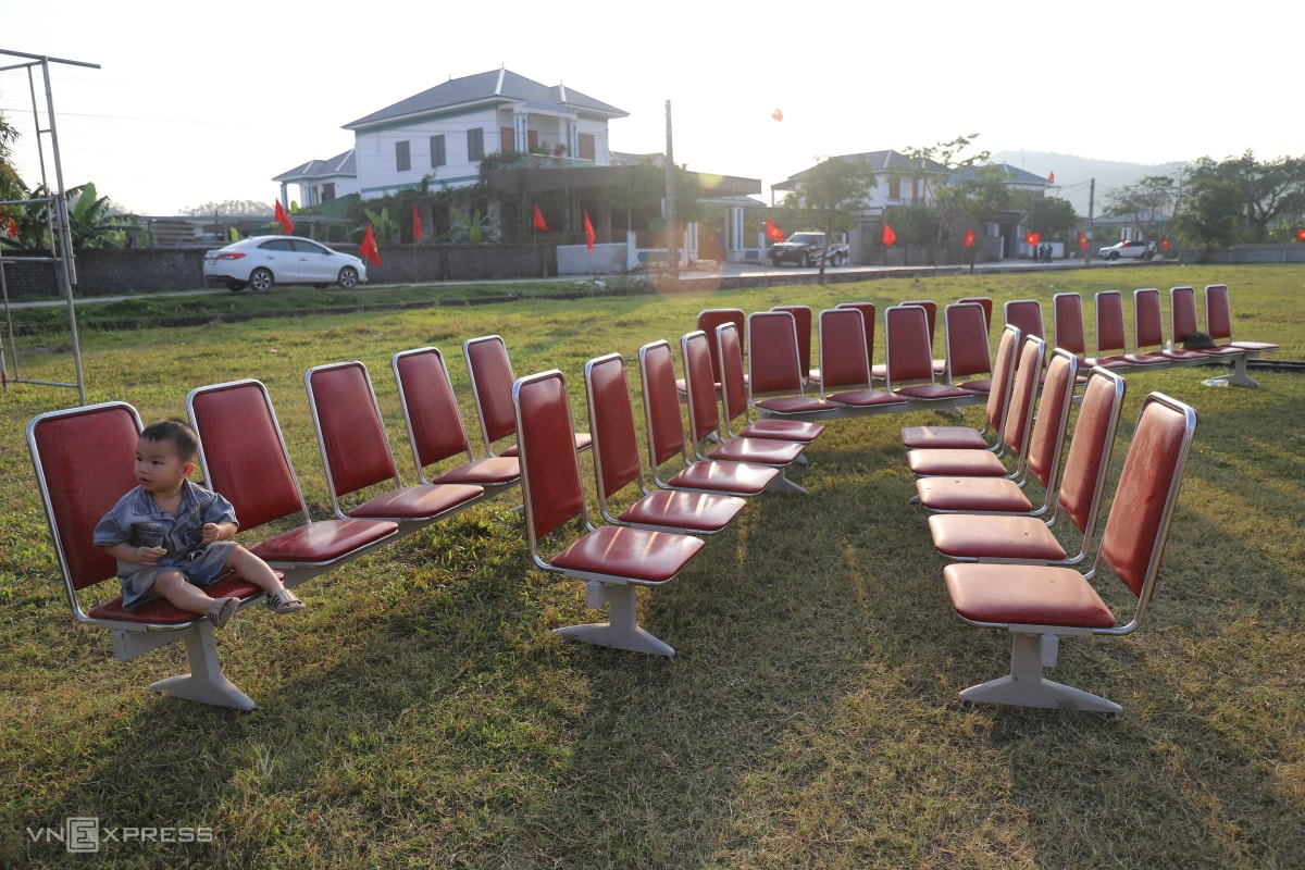 Gần sân khấu được bố trí nhiều ghế, đây là hàng ghế "VIP", ưu tiên dành cho các đại biểu là lãnh đạo, người thân cầu thủ, người già và trẻ em.