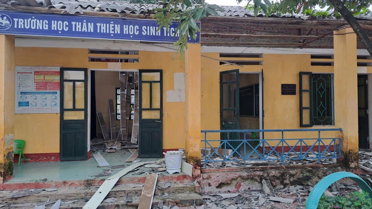 Cô Phạm Thị Tuất, Hiệu trưởng Trường Mầm non Châu Quế Thượng (Lào Cai), cho biết: "Chiều 30/9, mưa lớn kèm gió lốc đã làm tốc toàn bộ mái lớp học, hư hại trần nhựa và cửa phòng". Ngay sau khi được Quỹ và đơn vị đồng hành hỗ trợ, nhà trường nhanh chóng cải tạo, thay mái điểm trường, đón học sinh trở lại.