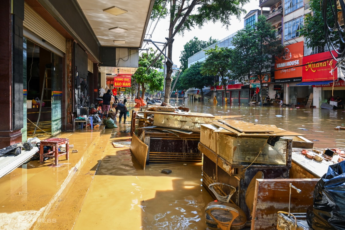 Chiều nay, nhiều khu vực trung tâm Thái Nguyên nước đã rút, để lại lớp bùn đặc sệt, rác thải ngổn ngang khắp phố phường, người dân đang khẩn trương dọn dẹp.