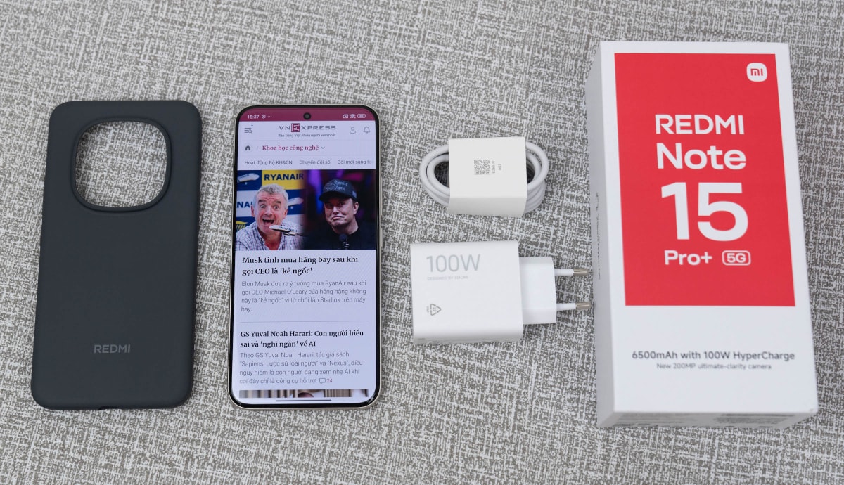Redmi Note 15 Pro+ có độ dày 7,9-8,2 mm tùy phiên bản, mỏng hơn nhiều mức 8,7 mm của thế hệ trước. Bên cạnh đó, nhờ sử dụng pin silicon-carbon, dung lượng pin cũng tăng từ 5.110 lên 6.500 mAh. Dù chưa phải dung lượng cao nhất trong phân khúc hiện nay, pin của máy đáp ứng thoải mái cho người dùng đến 2 ngày với thời gian onscreen khoảng 8 tiếng mỗi ngày. Công suất sạc nhanh giảm từ 120 W xuống còn 100 W nhưng nhờ công nghệ HyperCharge, máy vẫn có thể sạc đầy pin từ 0% lên 100% trong 35-40 phút. Xiaomi cho biết pin vẫn duy trì được 80% dung lượng sau 1.600 chu kỳ sạc, tương đương 4-5 năm sử dụng. Máy còn có loa stereo kép, hỗ trợ Dolby Atmos và âm thanh Hi-Res.