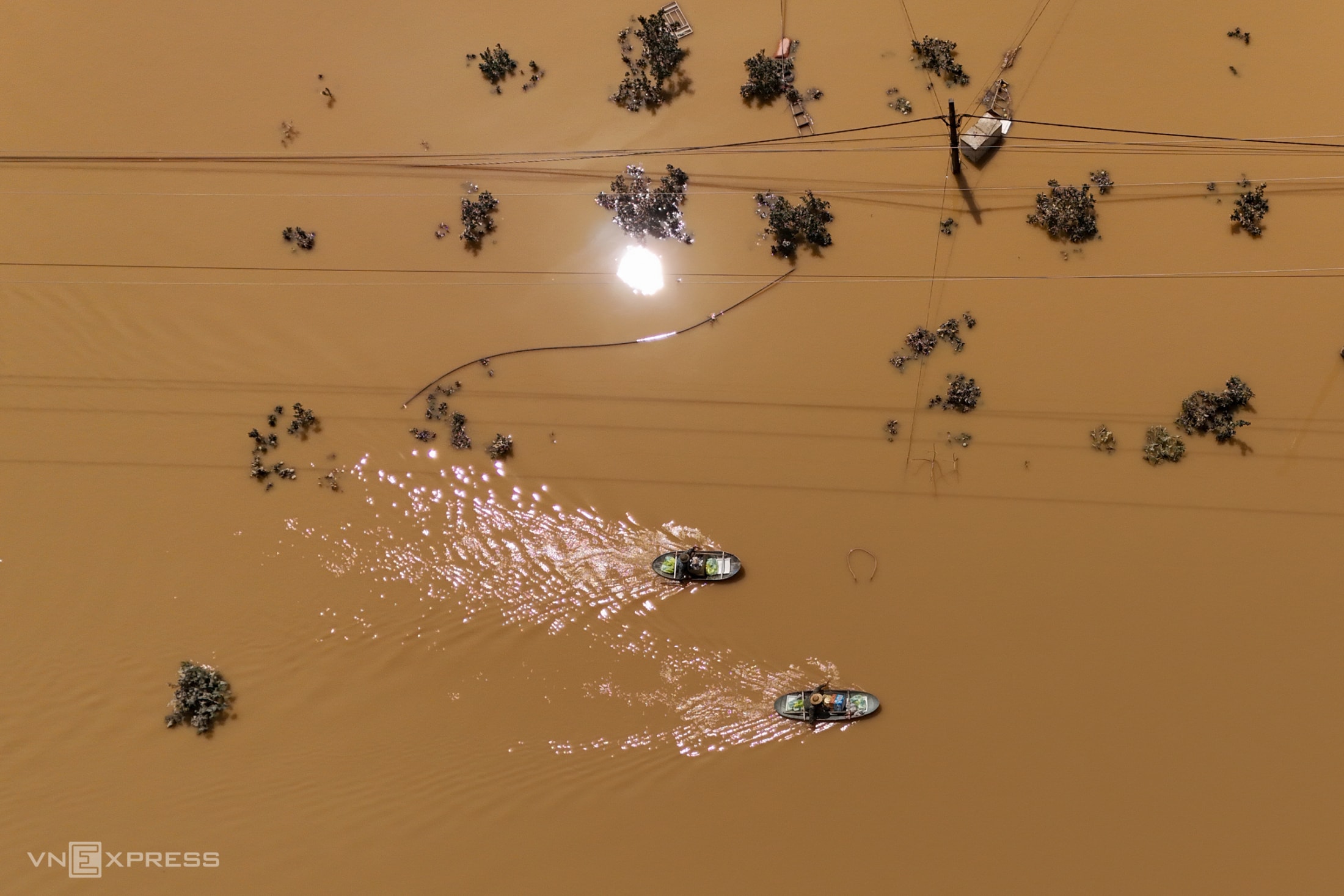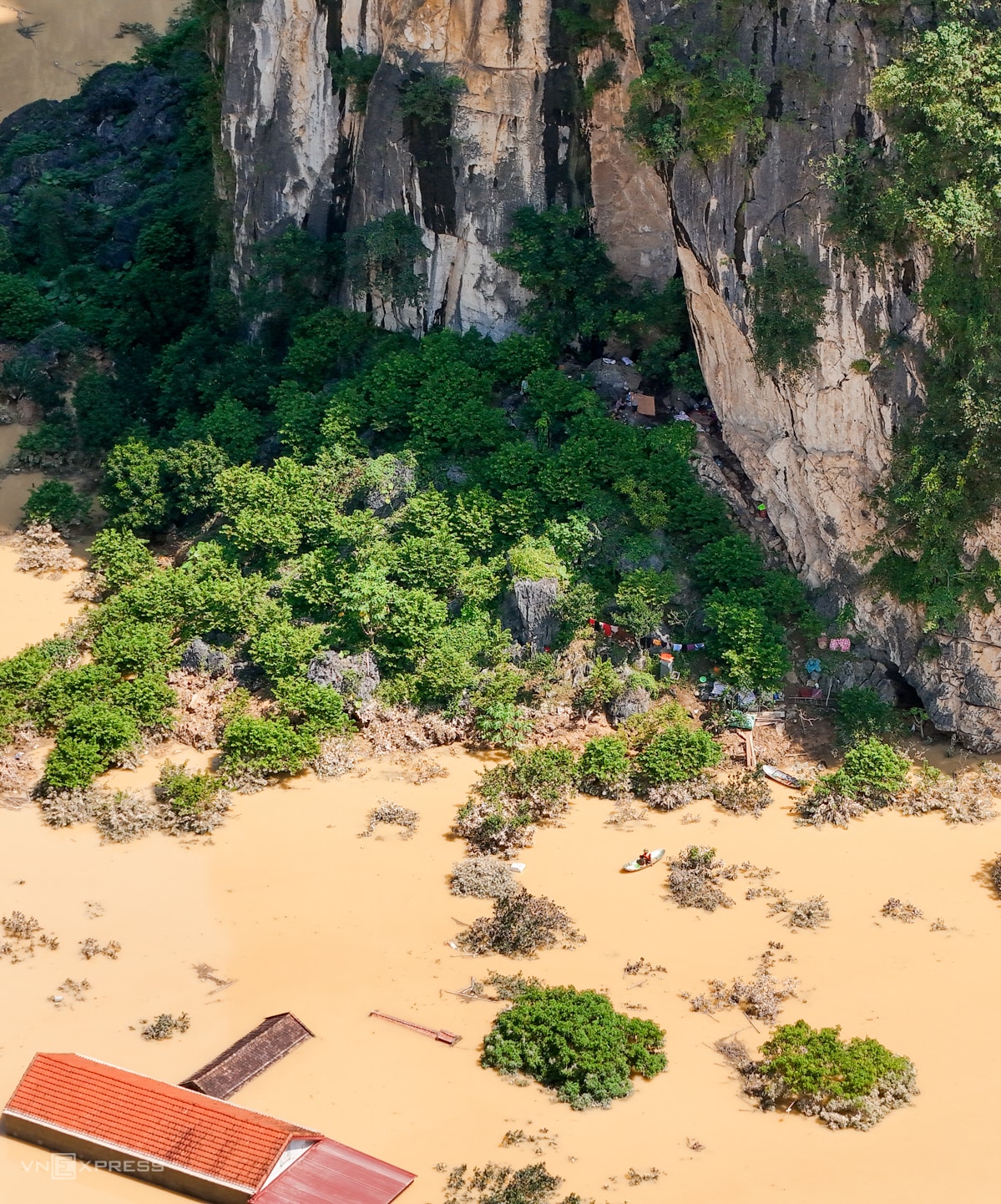 Gần 2.000 nhà dân ở xã Vân Nham vẫn ngập lút mái, người dân bị cô lập, phải lên nóc nhà hoặc vào hang núi để sinh hoạt tạm.