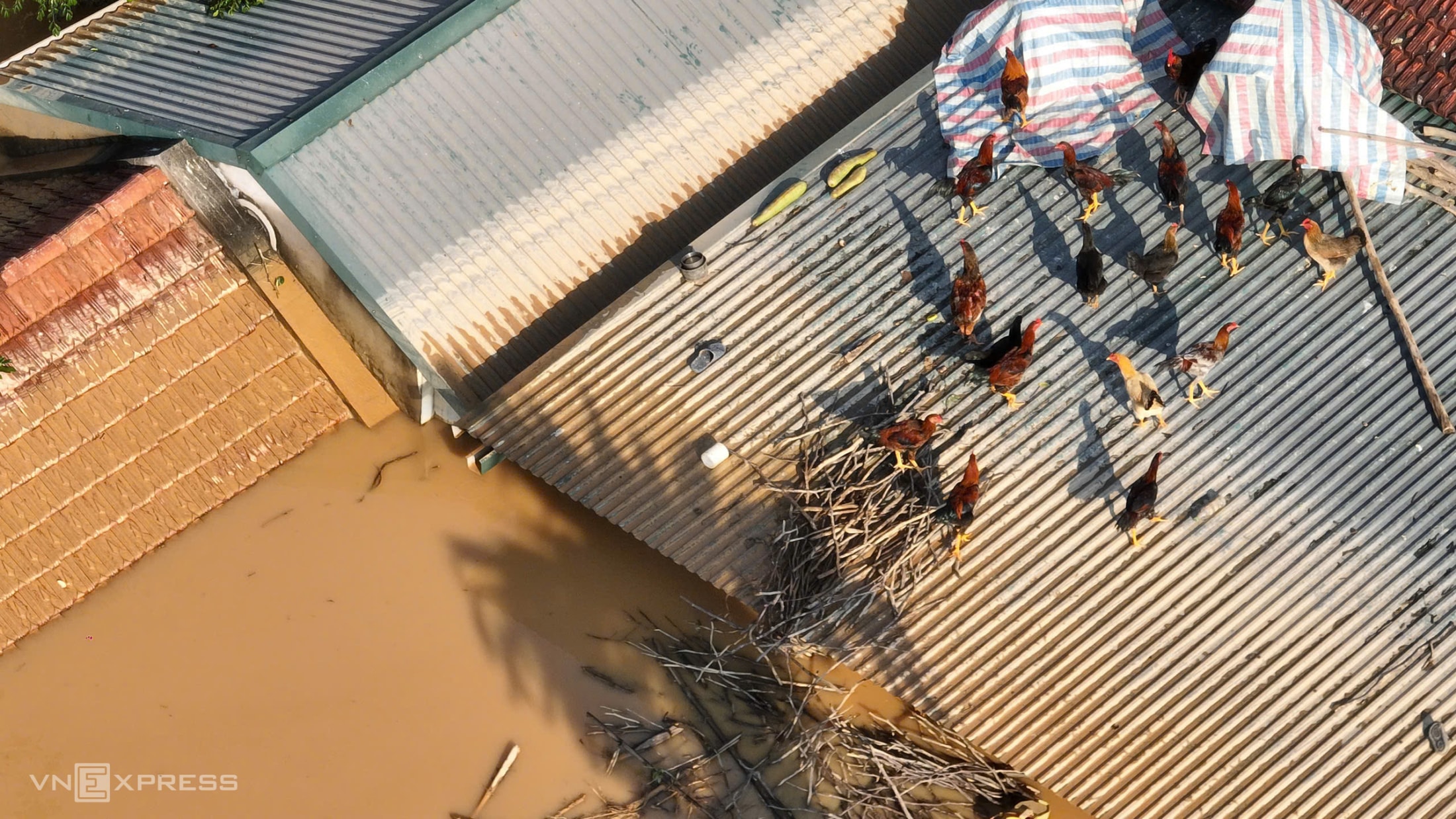 Ngập Vân nHam người dân nuôi gà trên mái nhà