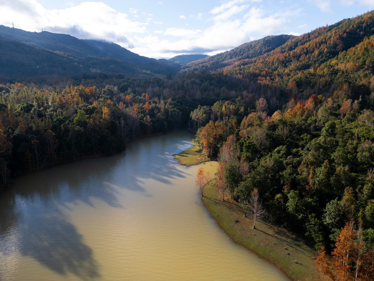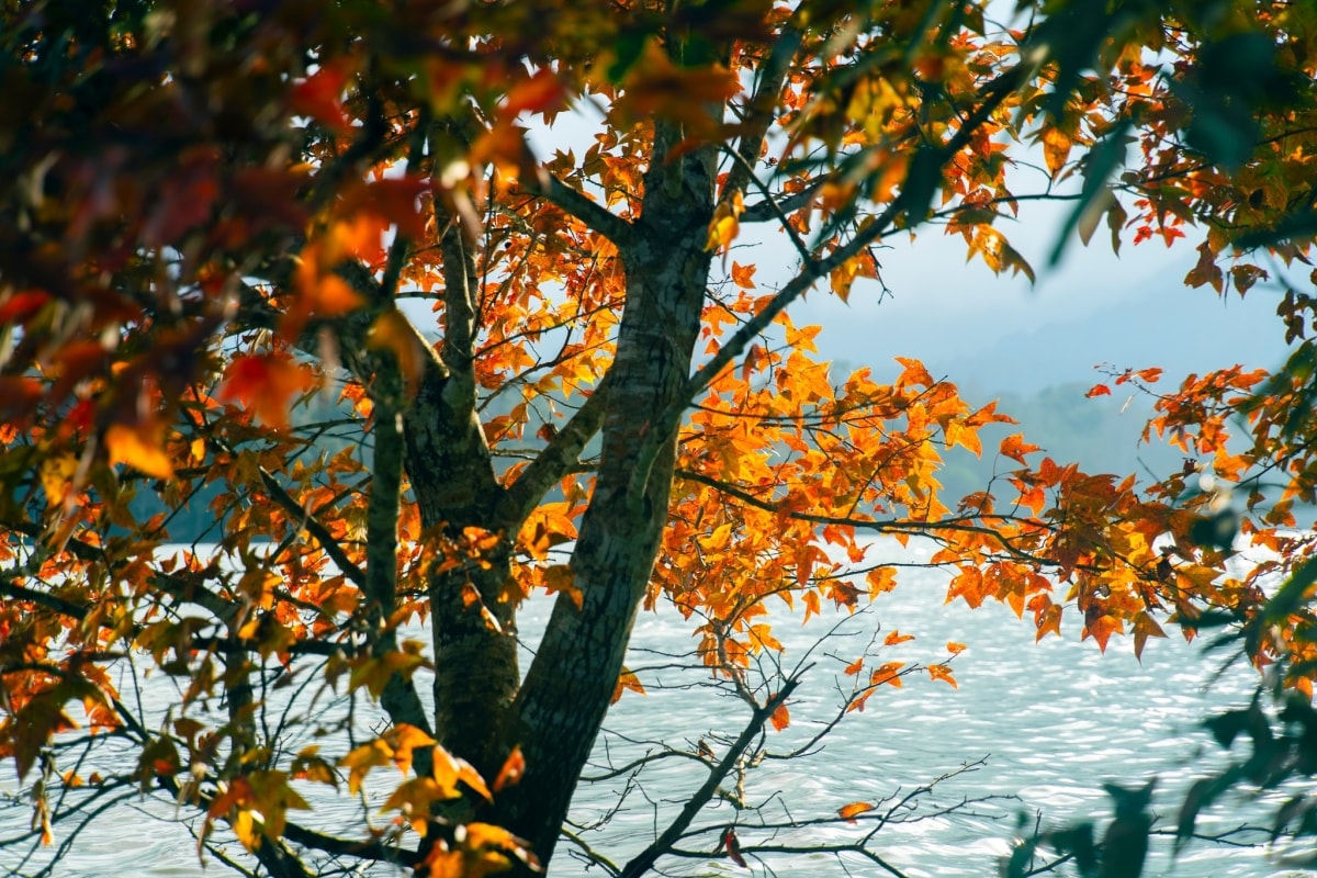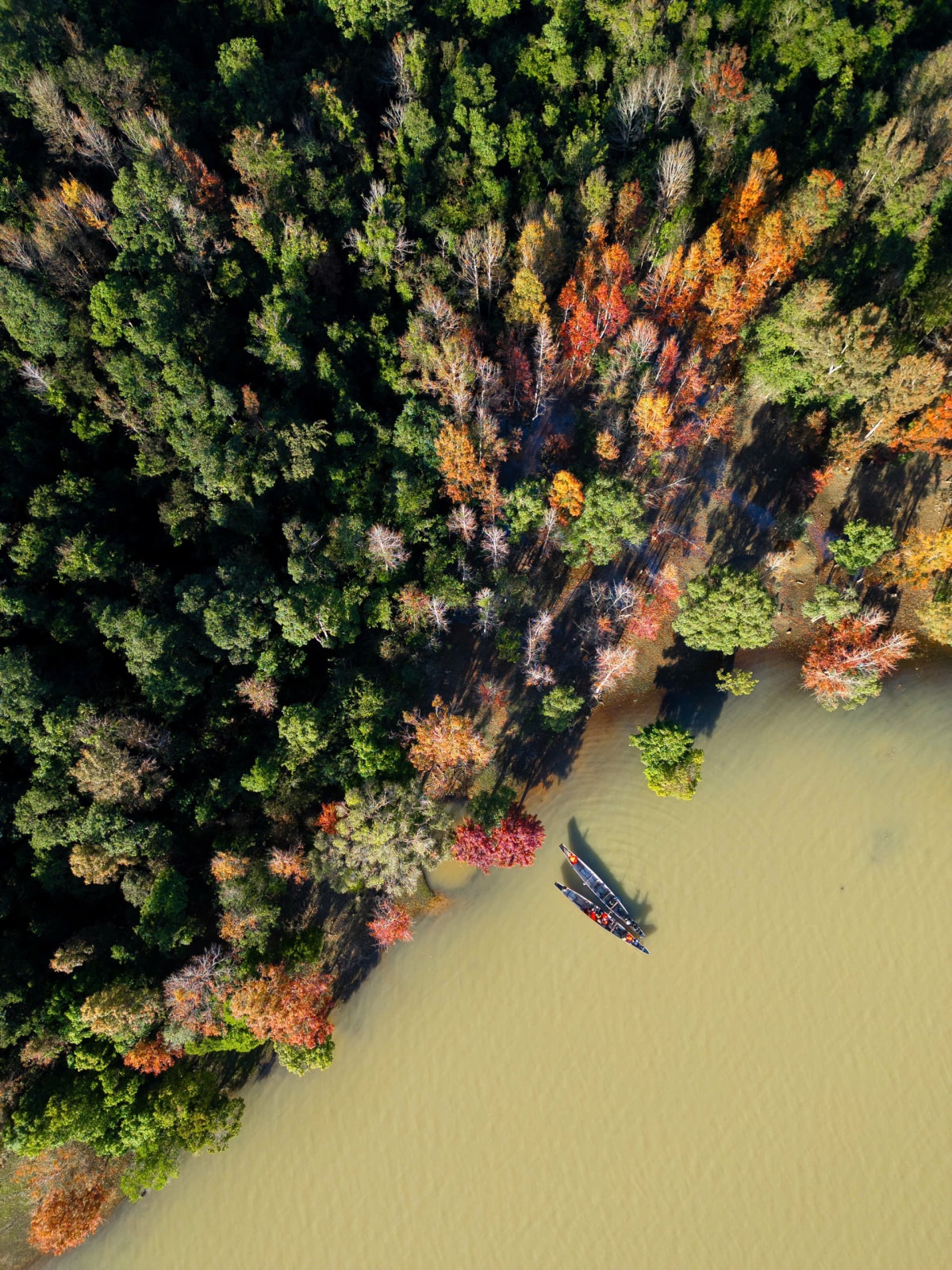 Tháng 12, rừng phong hương quanh hồ thủy điện Rào Quán chuyển màu lá, thu hút du khách trải nghiệm cung đi bộ 14 km kết hợp đi thuyền trên lòng hồ.