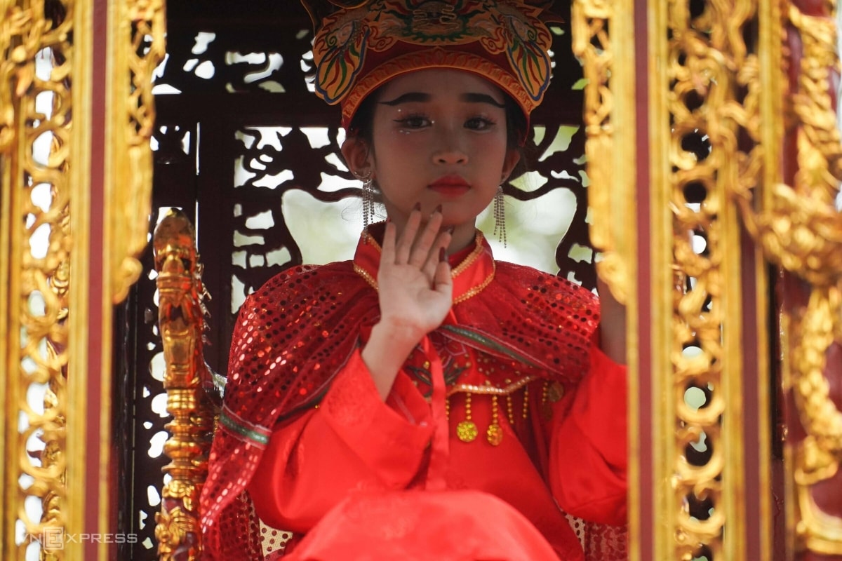 "Biết tin con gái được chọn vào vai nữ tướng, gia đình tôi đã chuẩn bị từ trước Tết, phân công người rước kiệu, mang lễ", anh Trần Văn Tiến, bố của Ánh Linh, cho biết.