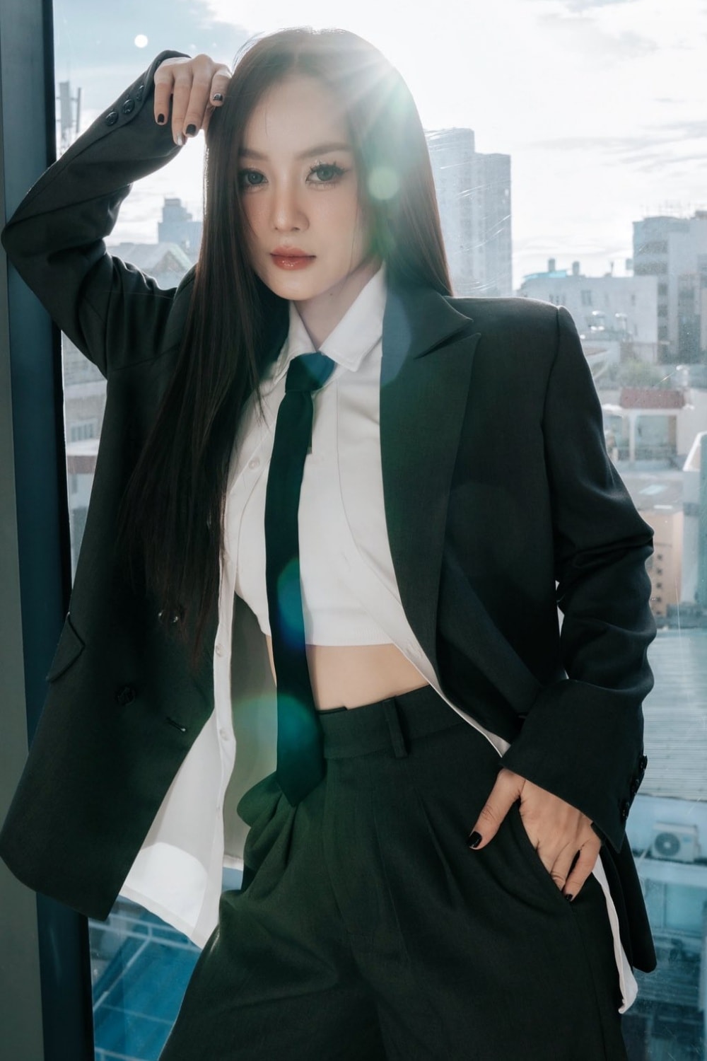 Ca sĩ chọn tông trang điểm nhẹ nhàng, diện đồ năng động với áo dây phom corset.