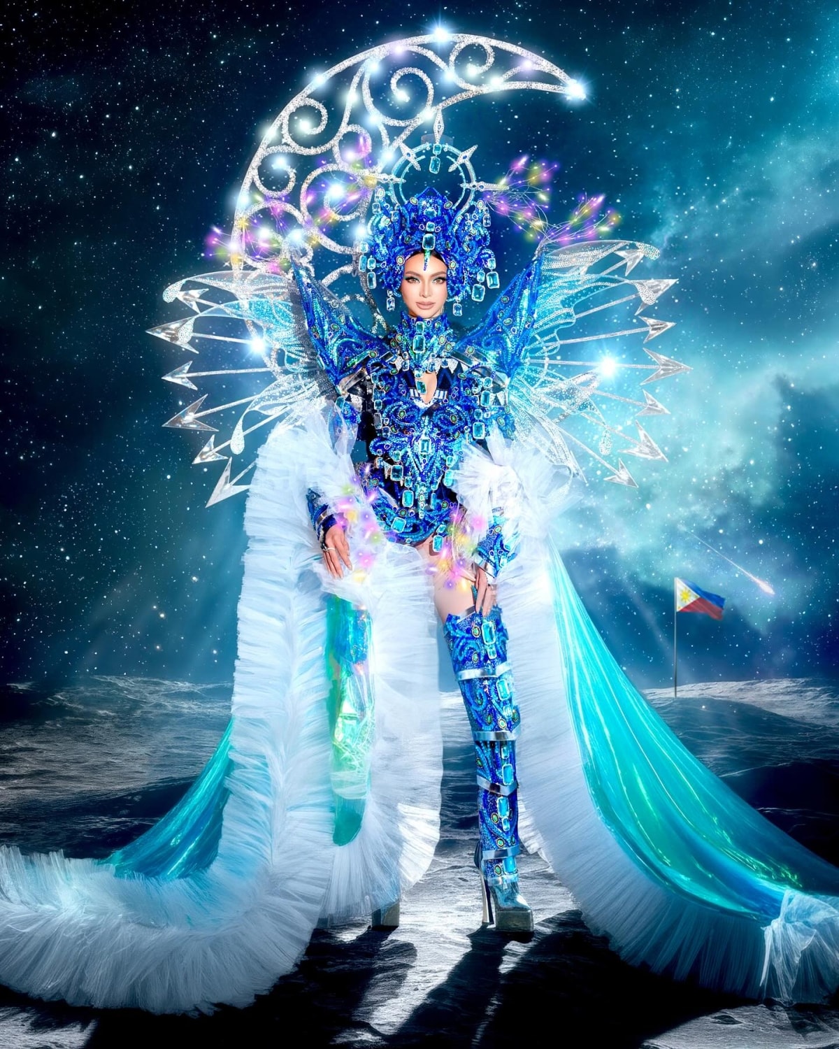 Emma Tiglao trình diễn trang phục dạ hội lấy cảm hứng từ chim phượng hoàng tại chung kết.