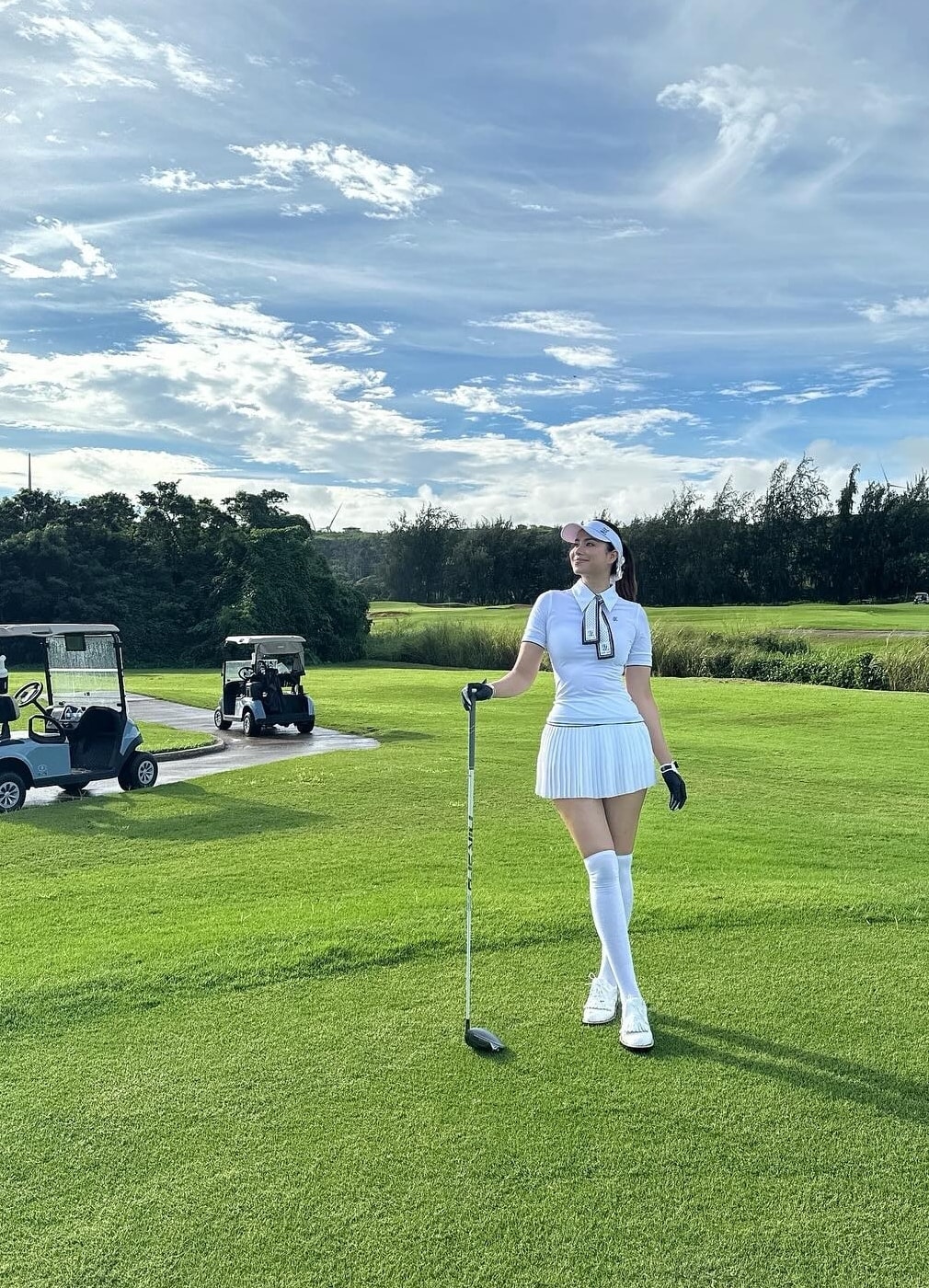 Phạm Hương chơi golf, yoga giữ dáng