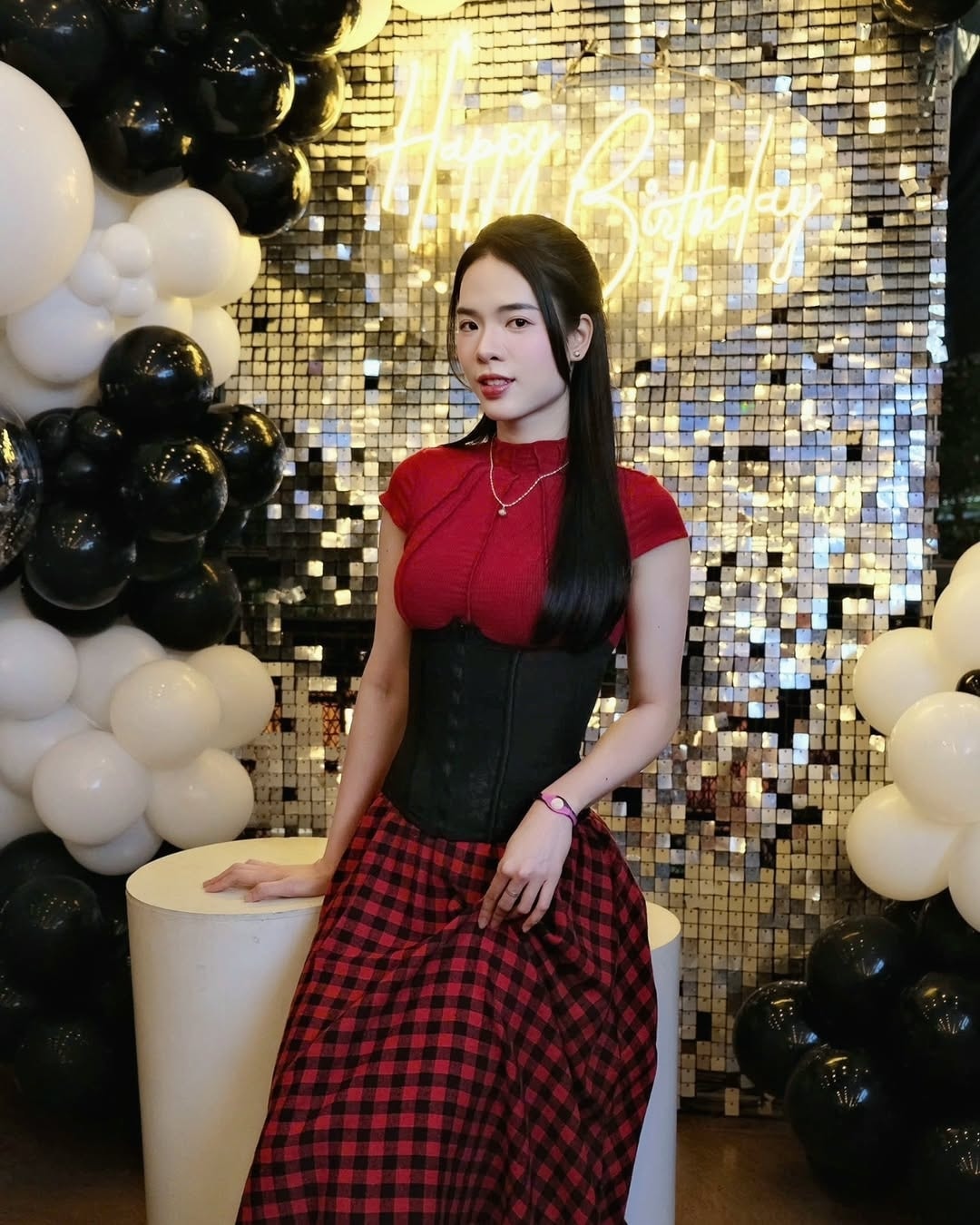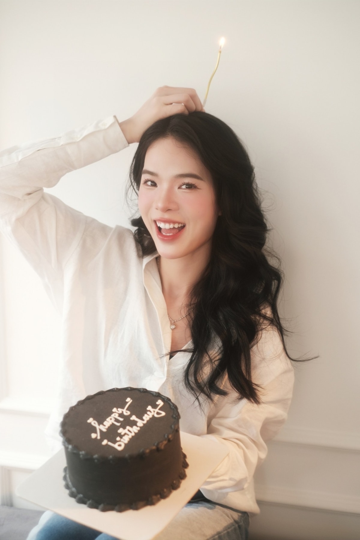 Trong các bộ ảnh thời trang, cô chọn làm tóc, trang điểm theo phong cách ngọt ngào.