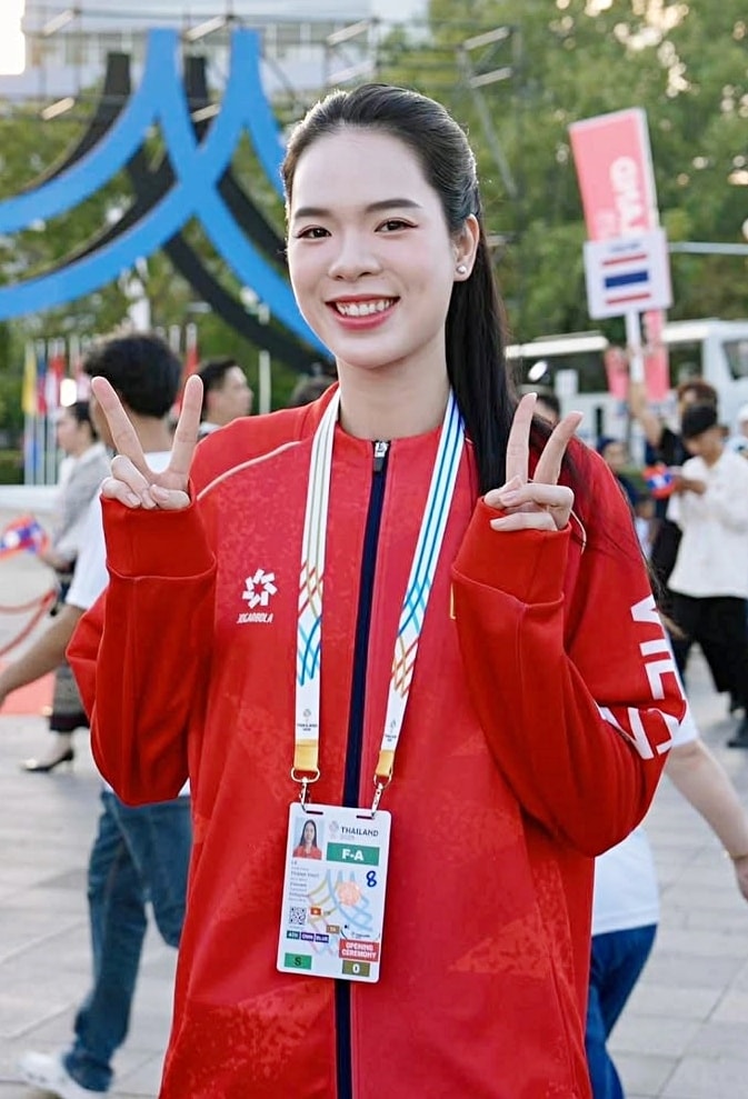Lê Thanh Thúy - "hoa khôi bóng chuyền" cầm cờ Việt Nam tại khai mạc SEA Games 33 - gây chú ý với vẻ khỏe khoắn, chiều cao 1,8 m.