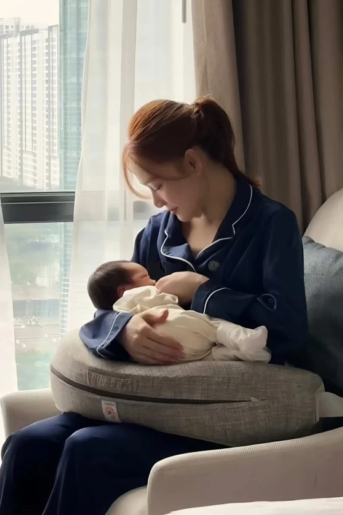 Diễn viên chăm sóc bé Joy lúc ở cữ.