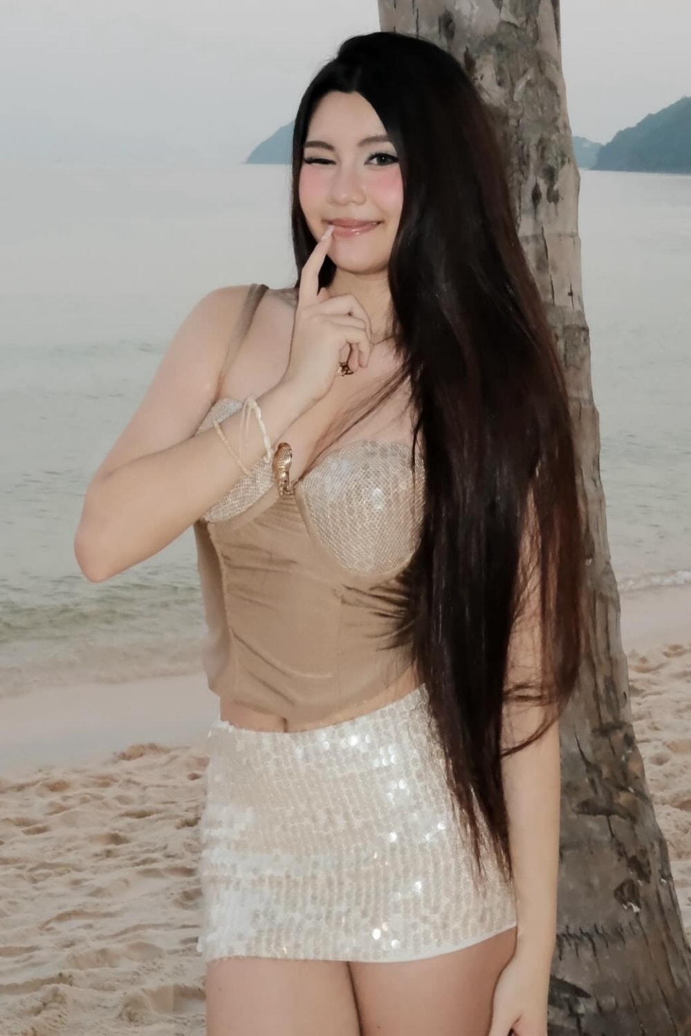 Hạt Dẻ (tên thật Mai Thảo Ngọc) có chuyến nghỉ dưỡng cuối năm cùng gia đình, hôm 11/2. Cô phối đồ dạo biển với bra-top cùng chân váy sequin, thu hút hơn 70.000 lượt thích trên trang cá nhân.