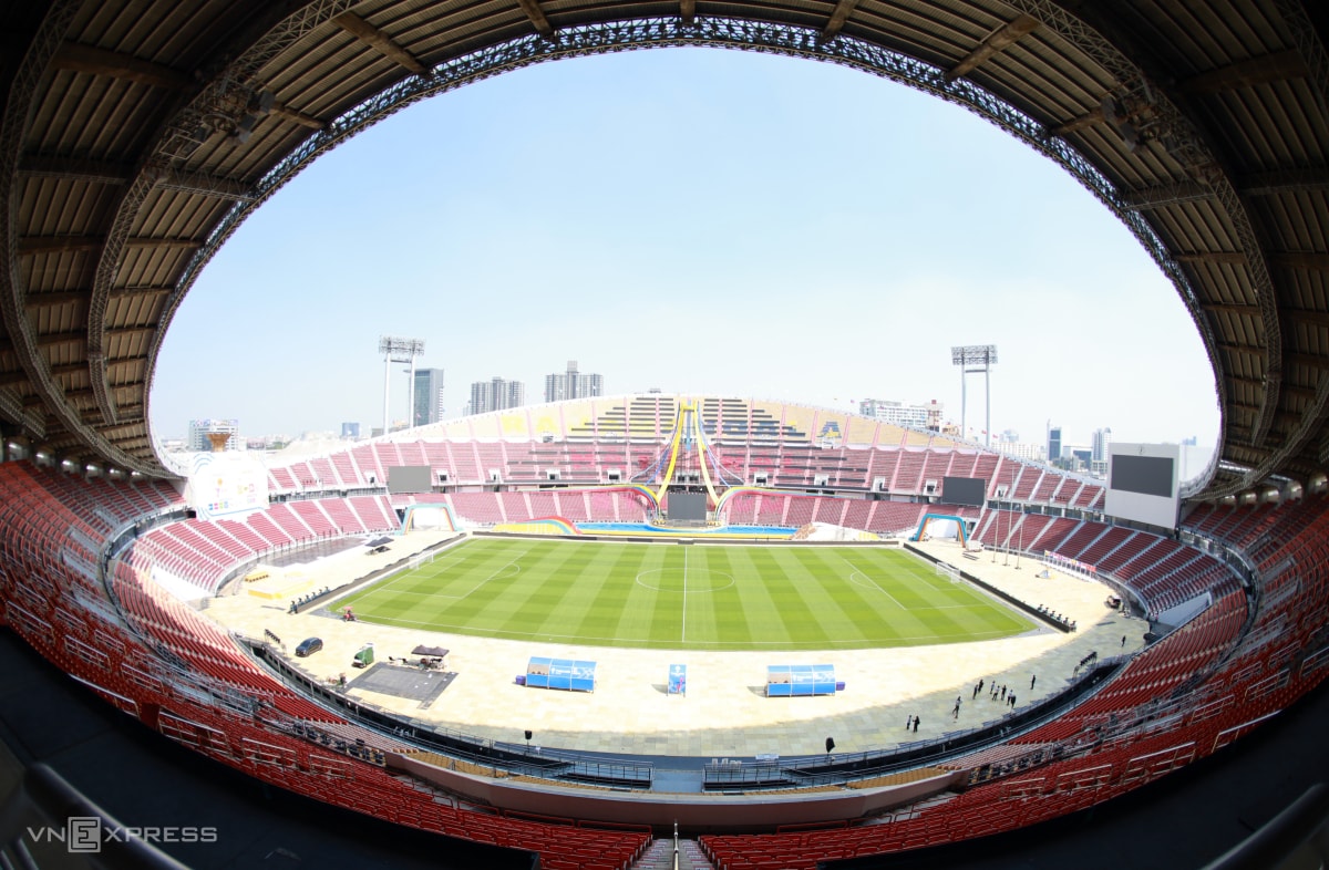 Chủ nhà Thái Lan đang hoàn thiện công tác chuẩn bị trên sân Rajamangala, Bangkok trước khi diễn ra các trận đấu ở môn bóng đá nam và lễ khai mạc SEA Games 33.