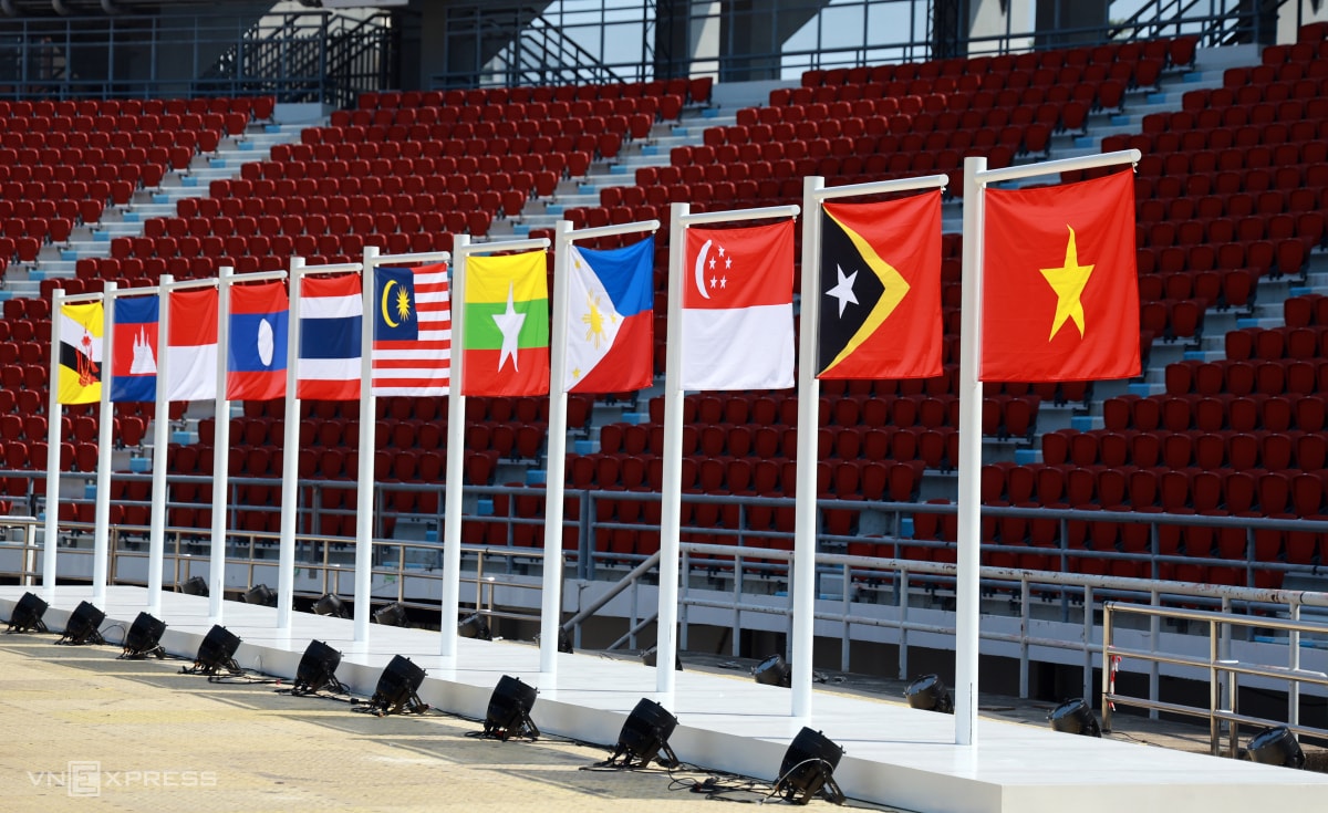 Quốc kỳ của 11 nước tham dự Đại hội đã được dựng lên ở khu vực khán đài D, gồm: Việt Nam, Thái Lan, Indonesia, Malaysia, Singapore, Philippines, Myanmar, Campuchia, Lào, Brunei và Timor Leste. Đây là những thành viên của Liên đoàn Thể thao Đông Nam Á – đơn vị chịu trách nhiệm điều phối và giám sát đại hội.