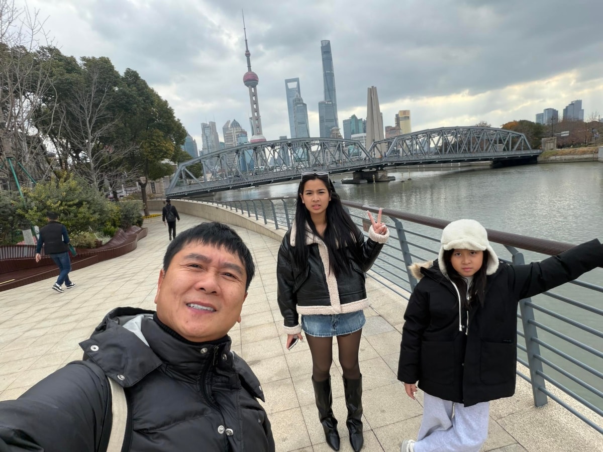 Hồ Hoài Anh đưa hai con gái gồm Khánh Hà (Mina), 15 tuổi, Hồ Tú Anh (Misu), 11 tuổi, đi Thượng Hải, Trung Quốc, đón năm mới.