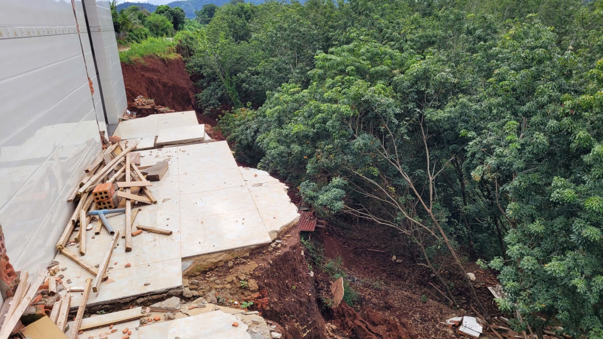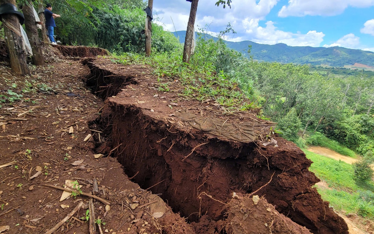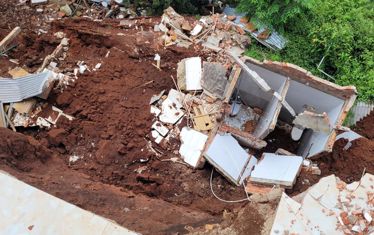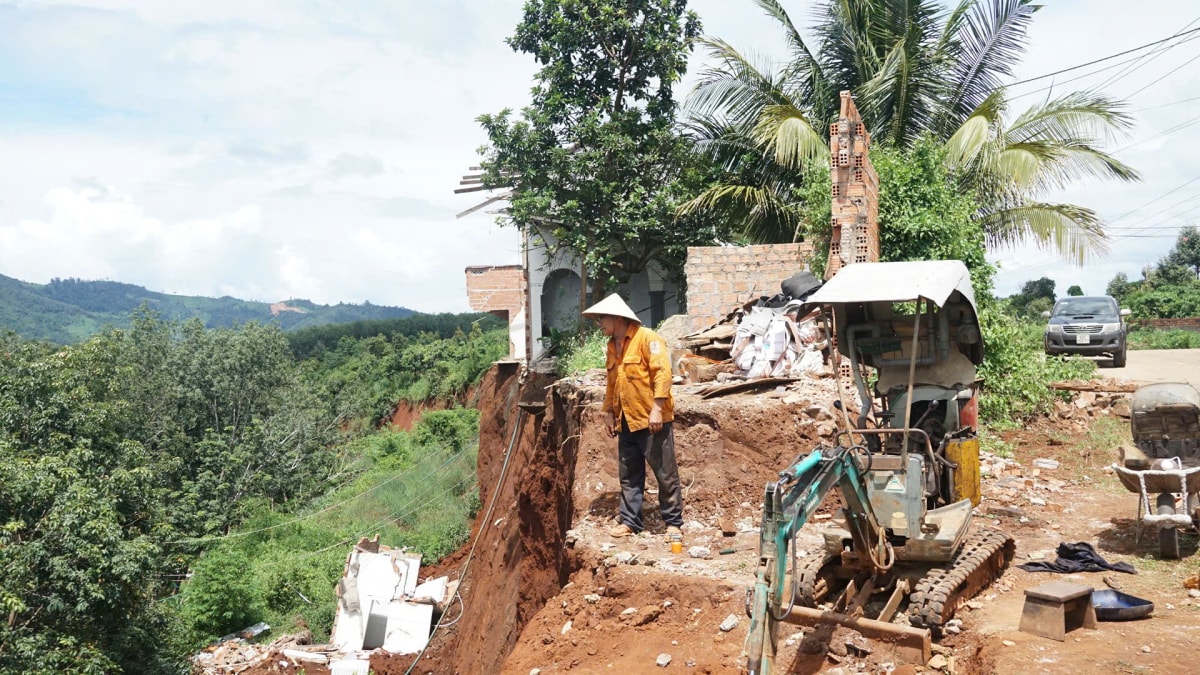 Sạt lở đường 'nuốt chửng' nhà sau mưa kéo dài