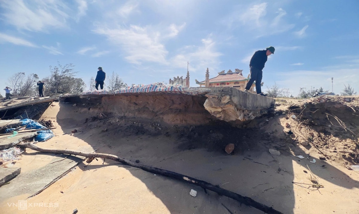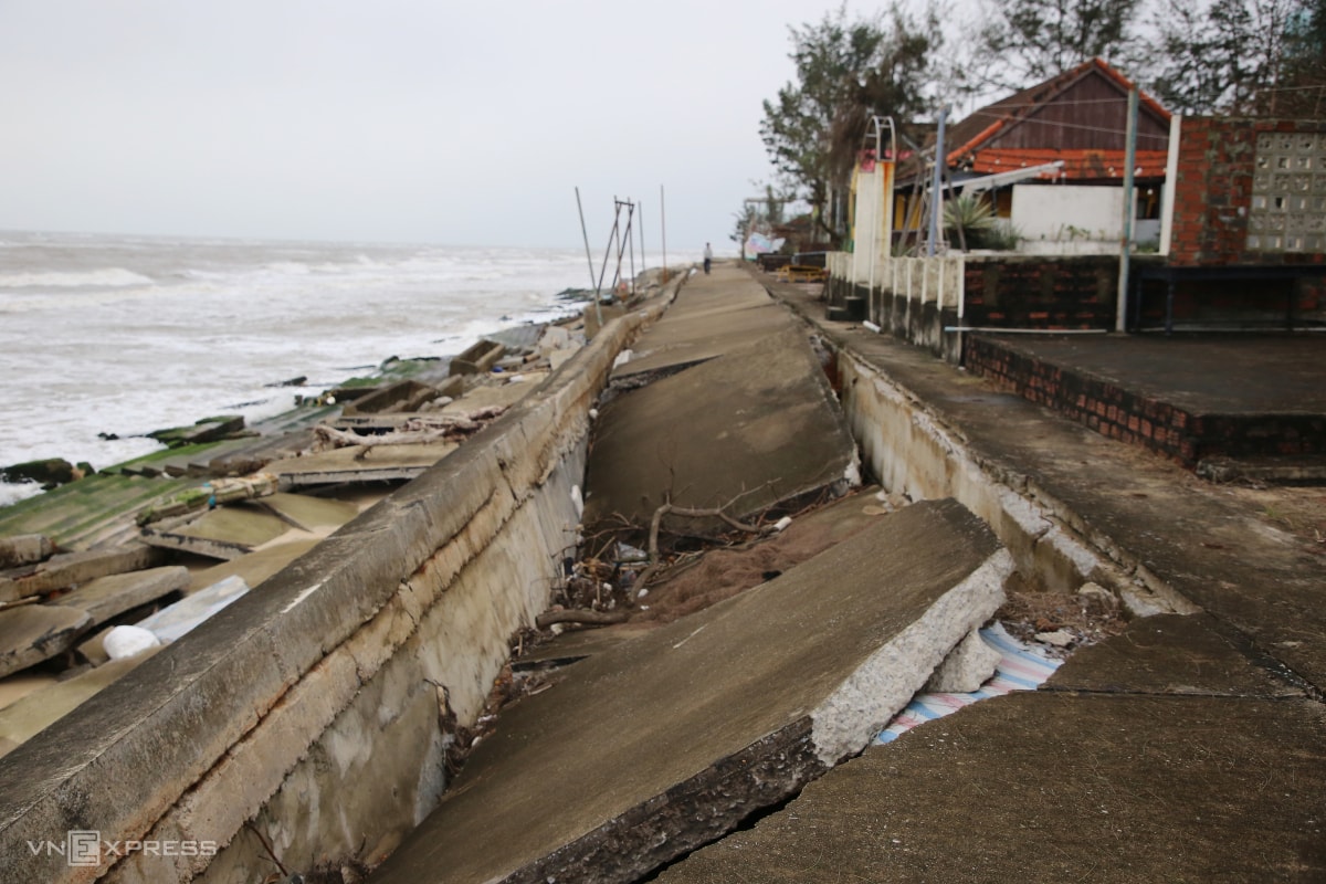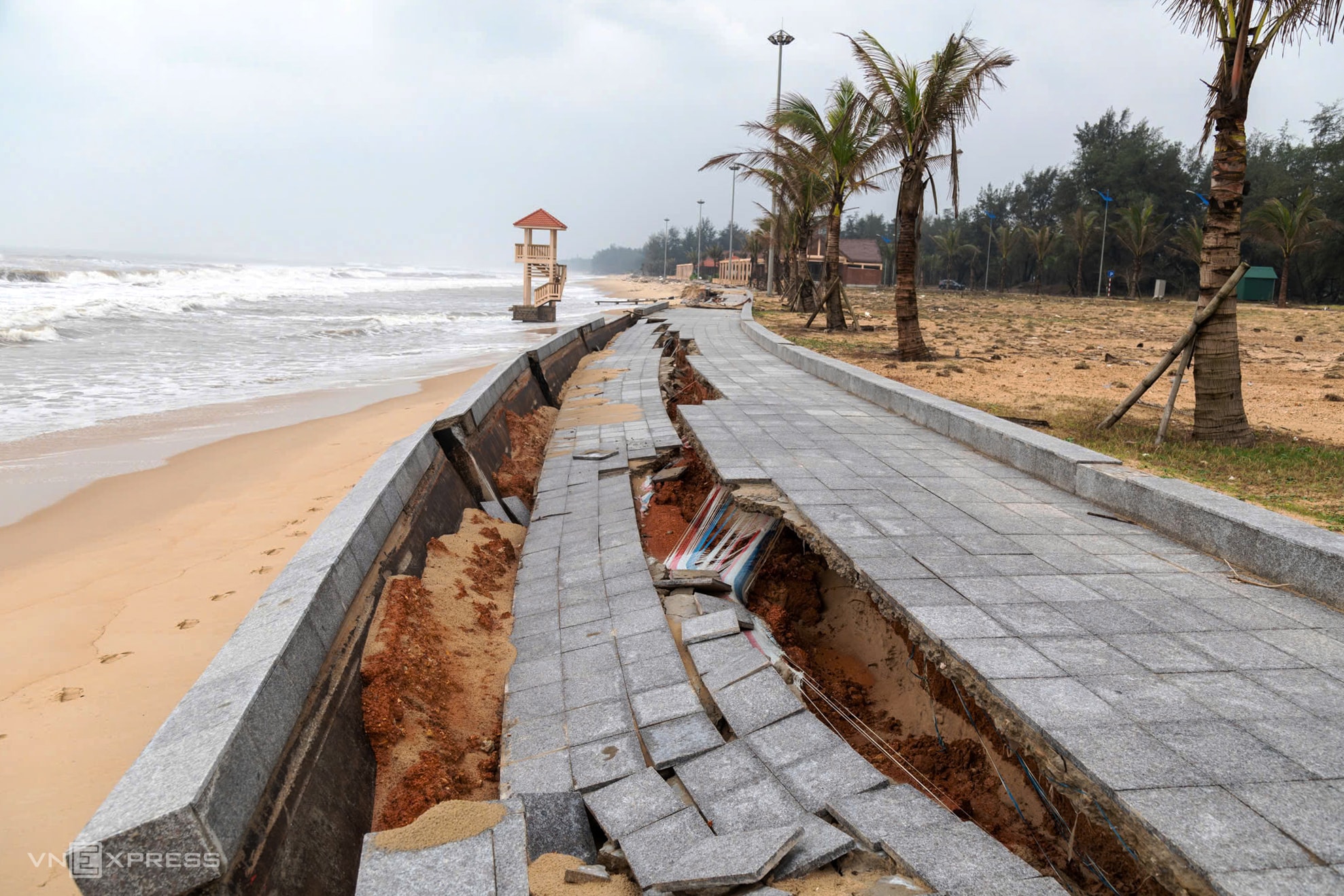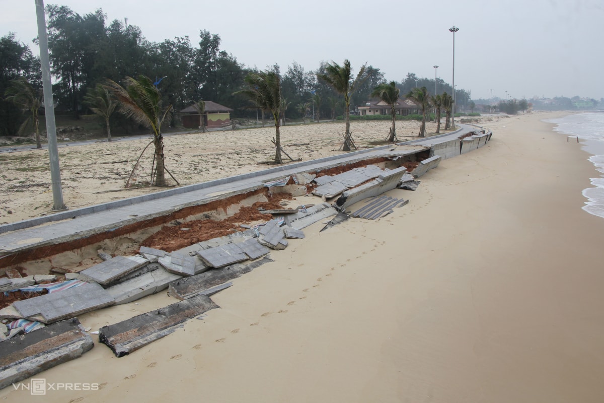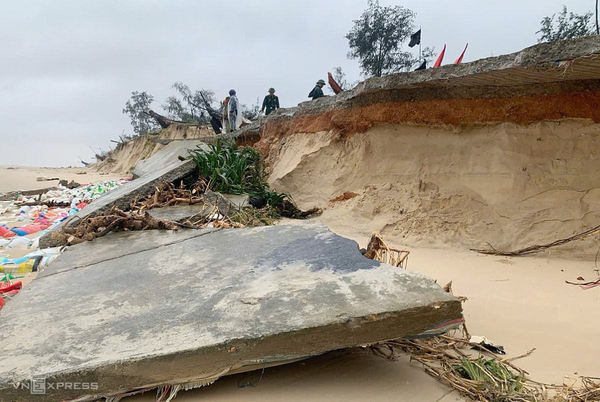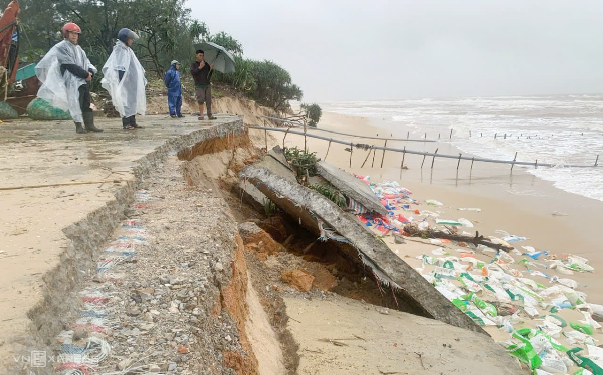 Sạt lở hàng nghìn mét bờ kè ven biển Quảng Trị